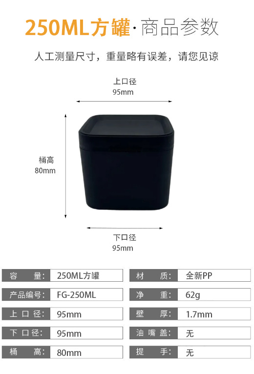 Квадратная банка Пищевая пластиковая банка шоколадная банка для закусок Бутылка для хранения 250ml Печатная квадратная банка