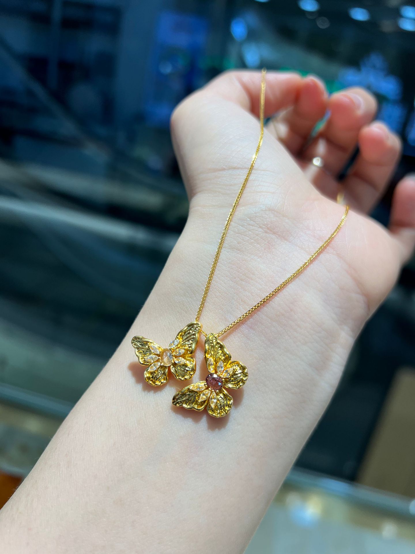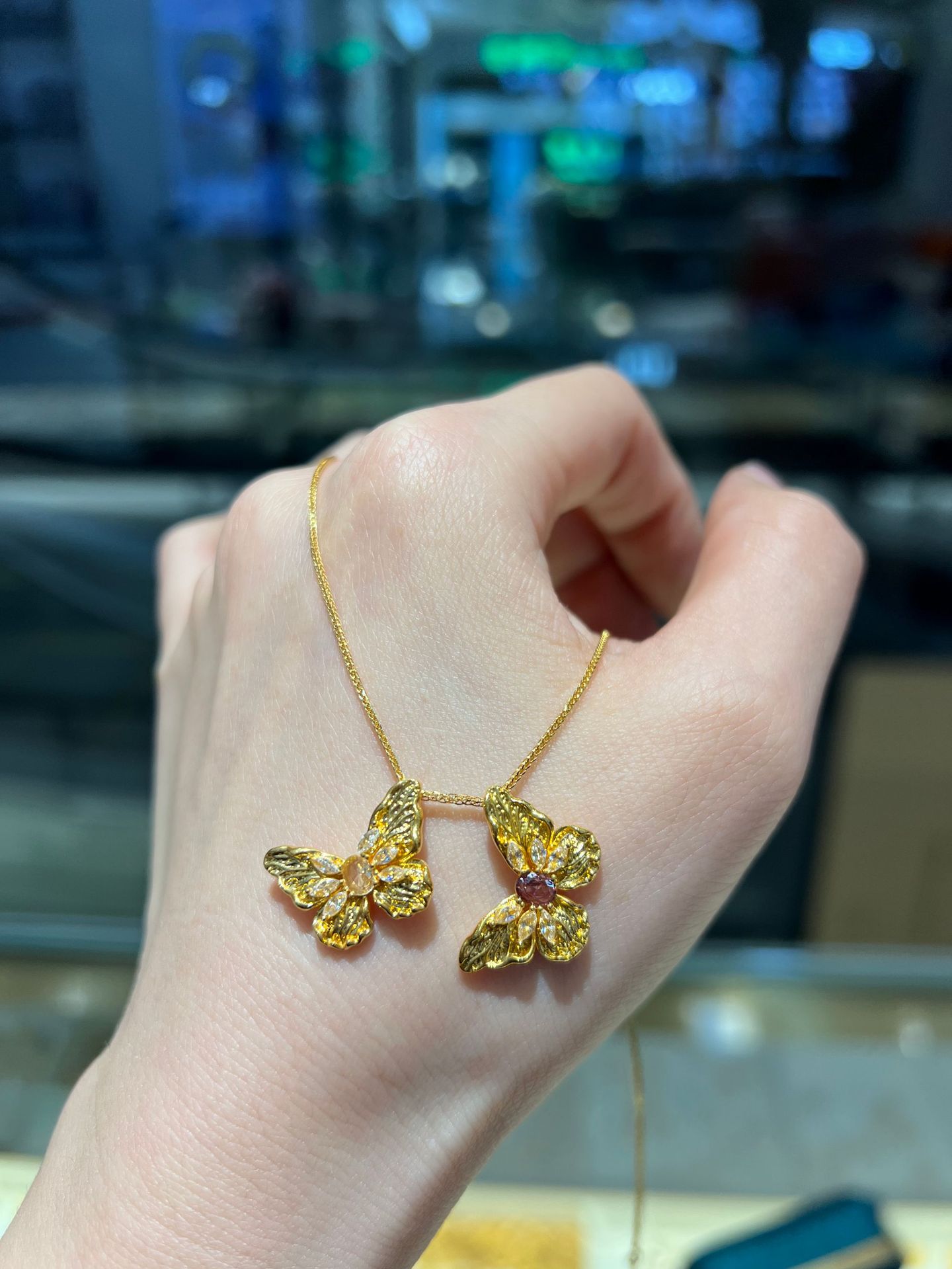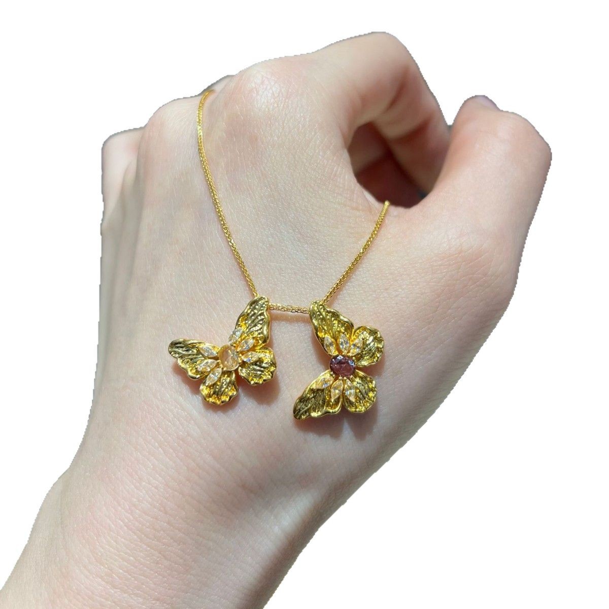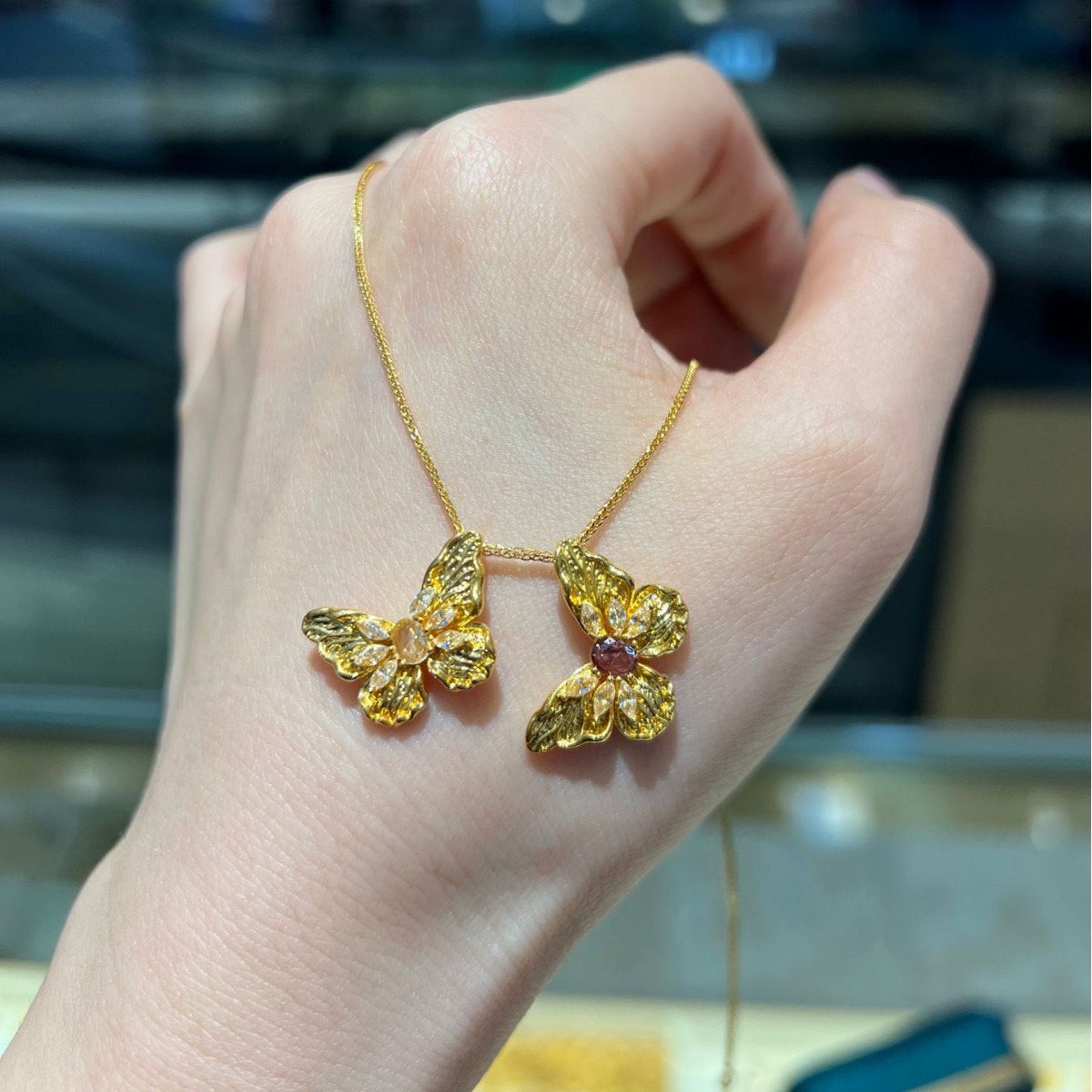 Цельное ожерелье из чистого золота 18 карат, новая мечта, бабочка, цвет лошадиного глаза, подвеска с сокровищами, одиночный кулон, цветное золотое ожерелье au750, золотое ожерелье