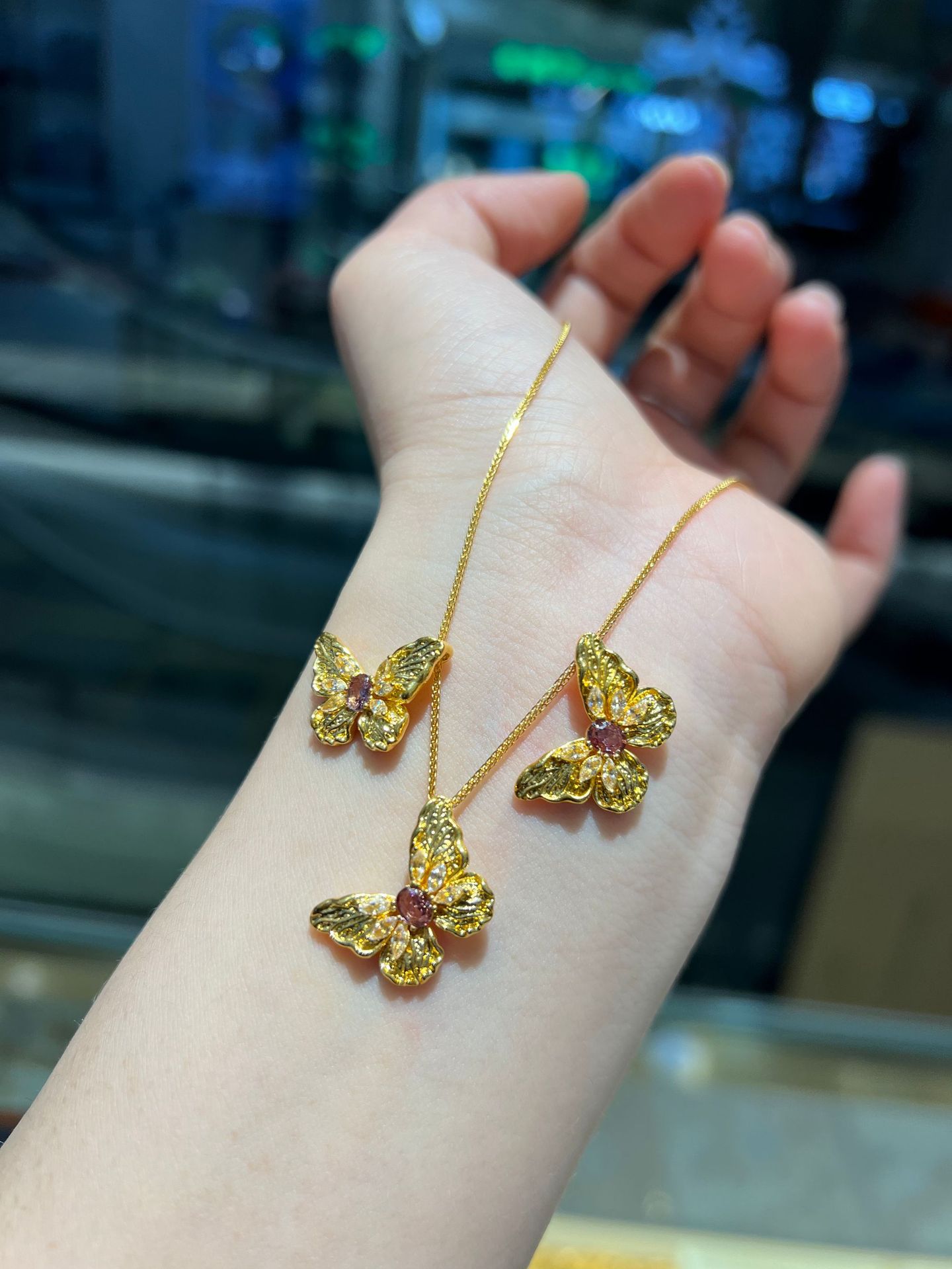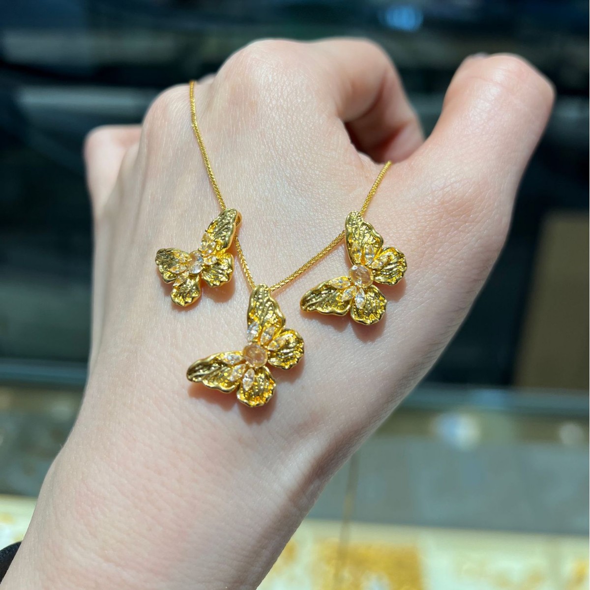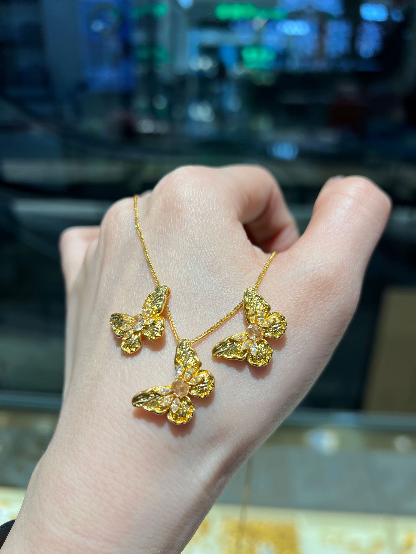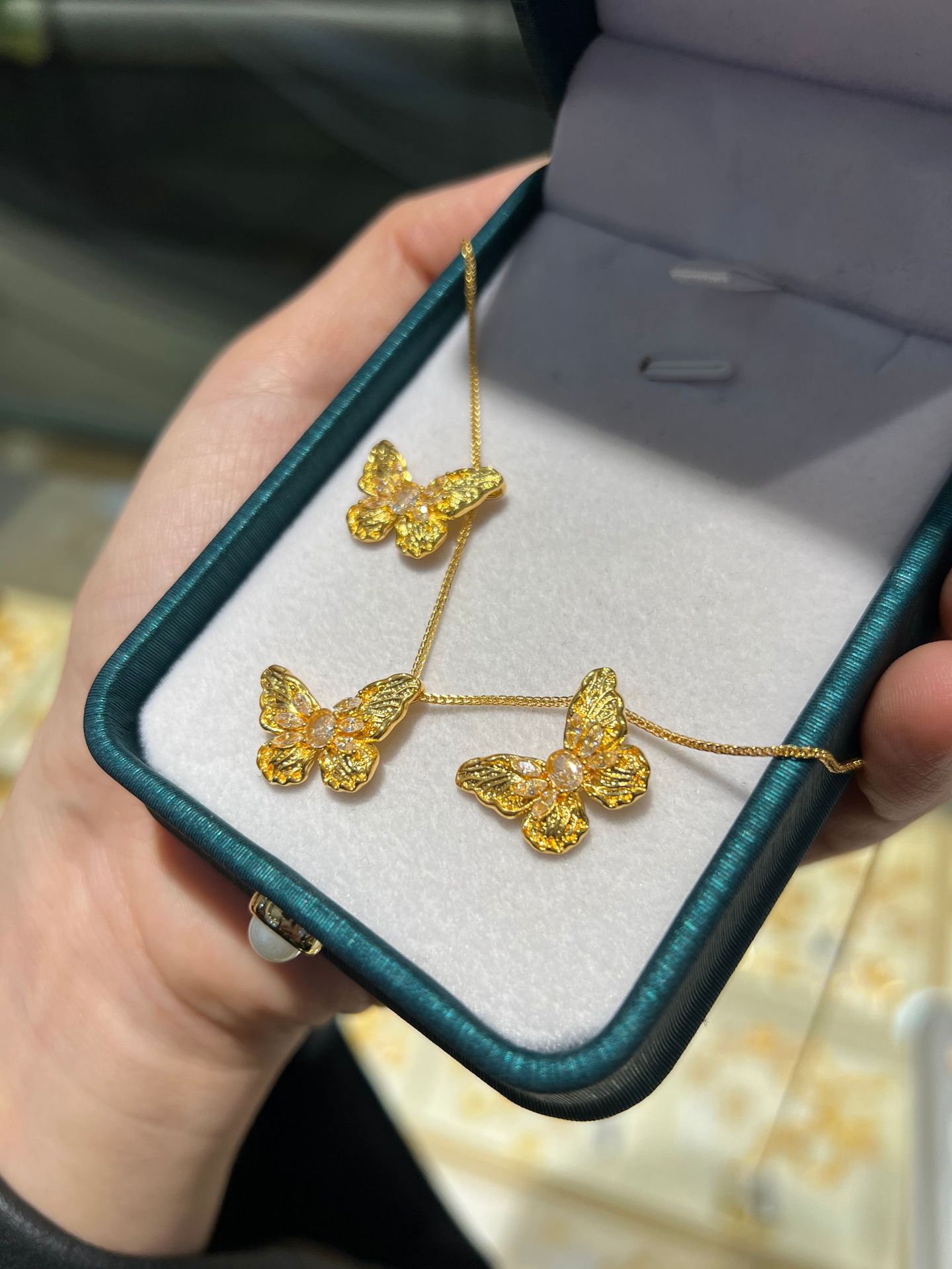 Цельное ожерелье из чистого золота 18 карат, новая мечта, бабочка, цвет лошадиного глаза, подвеска с сокровищами, одиночный кулон, цветное золотое ожерелье au750, золотое ожерелье