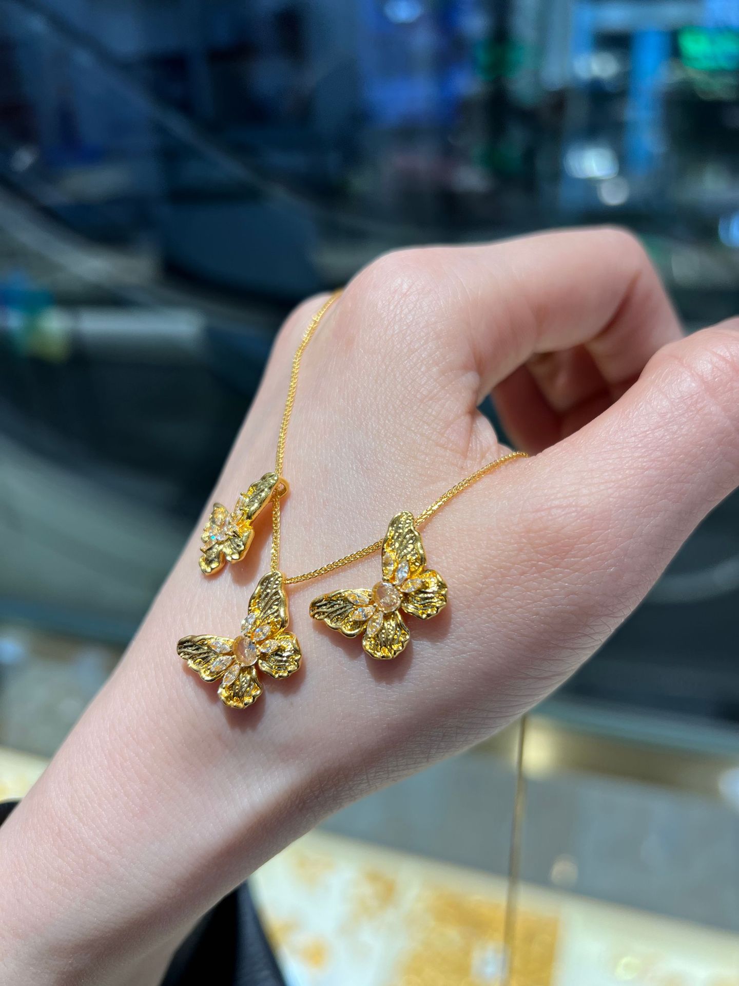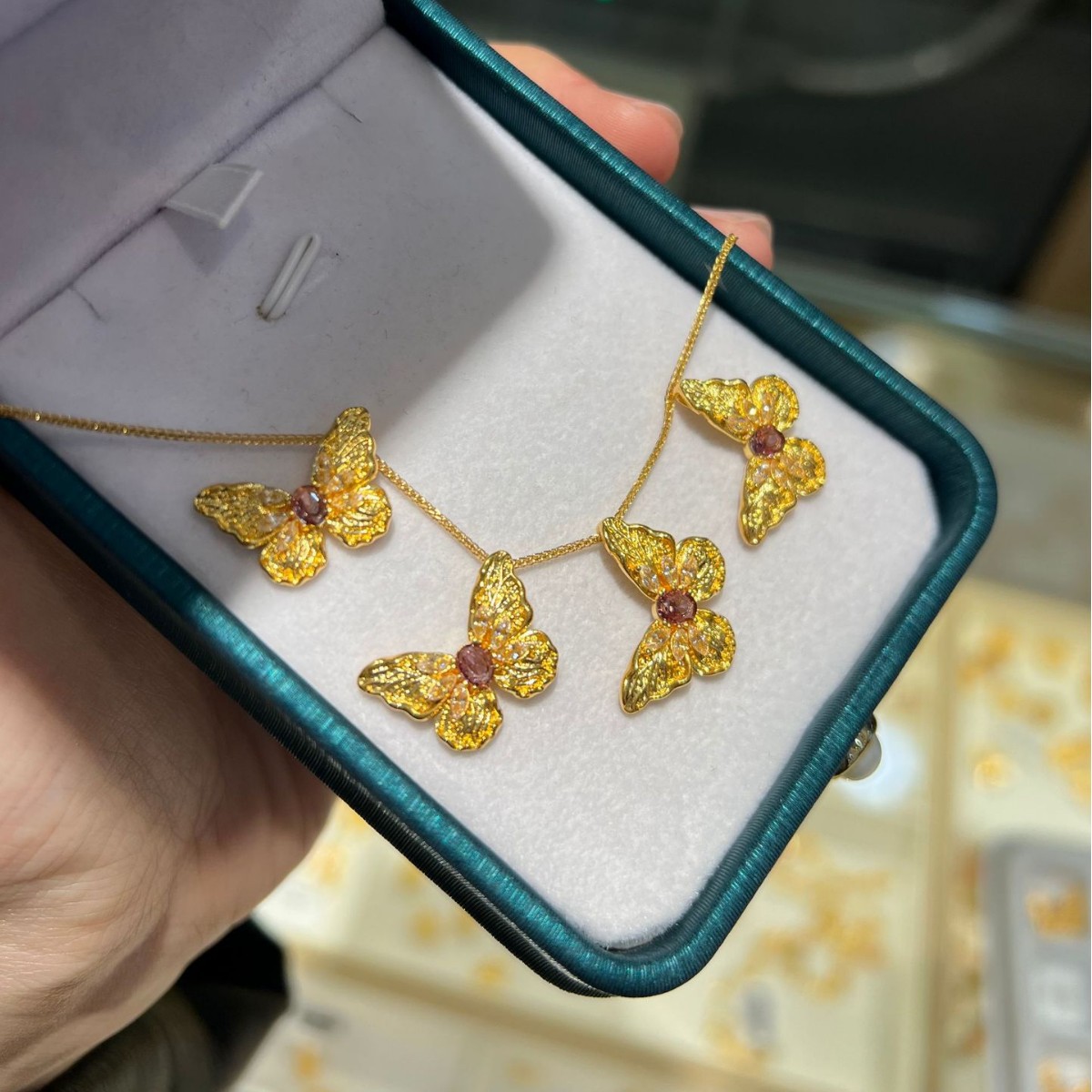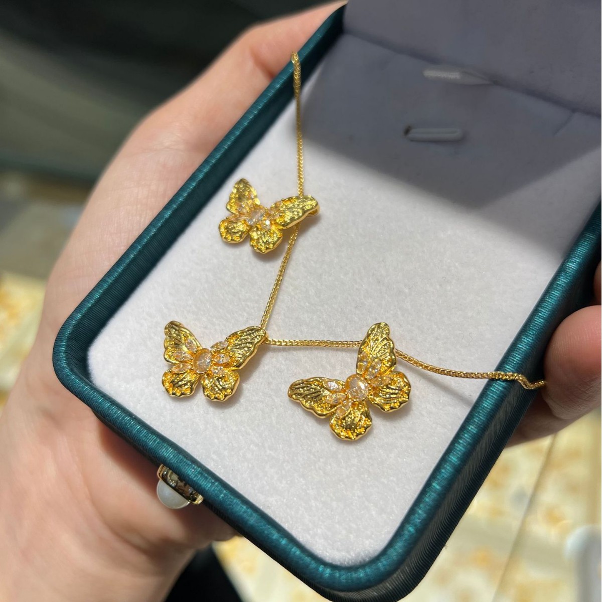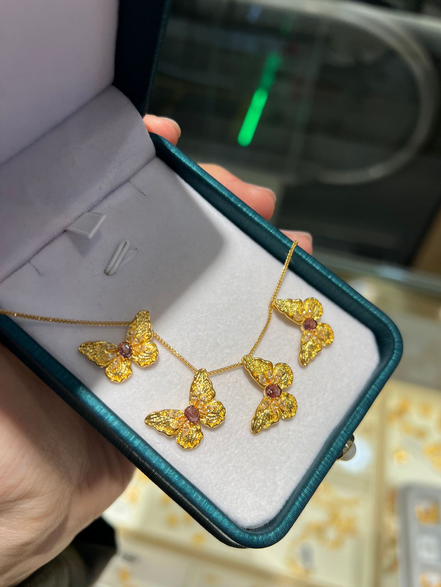 Цельное ожерелье из чистого золота 18 карат, новая мечта, бабочка, цвет лошадиного глаза, подвеска с сокровищами, одиночный кулон, цветное золотое ожерелье au750, золотое ожерелье