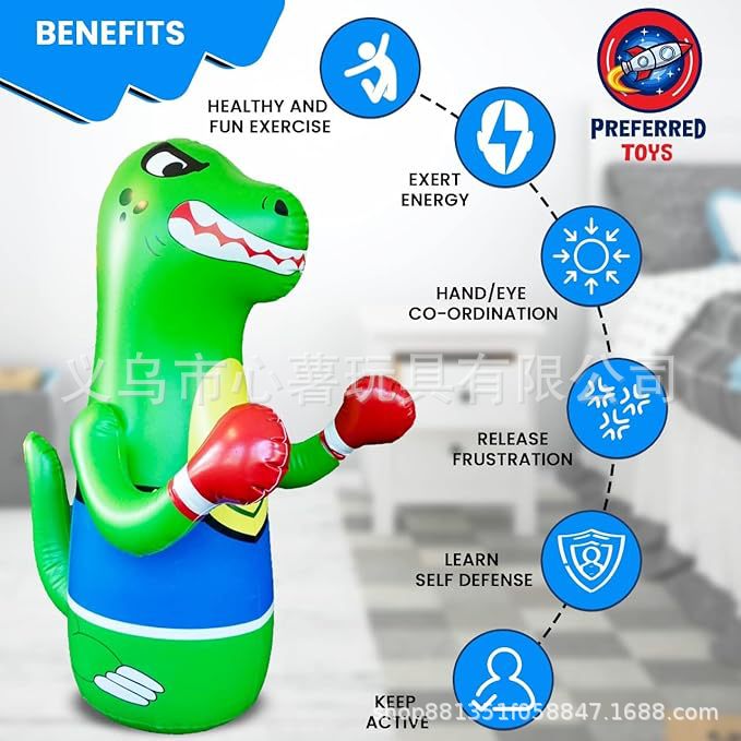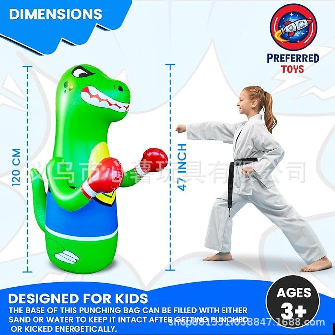 Тренажер-тумблер «Тираннозавр Рекс», вертикальная боксерская колонна для домашнего использования, надувной фитнес-тумблер из ПВХ, простой тренировочный комплекс.