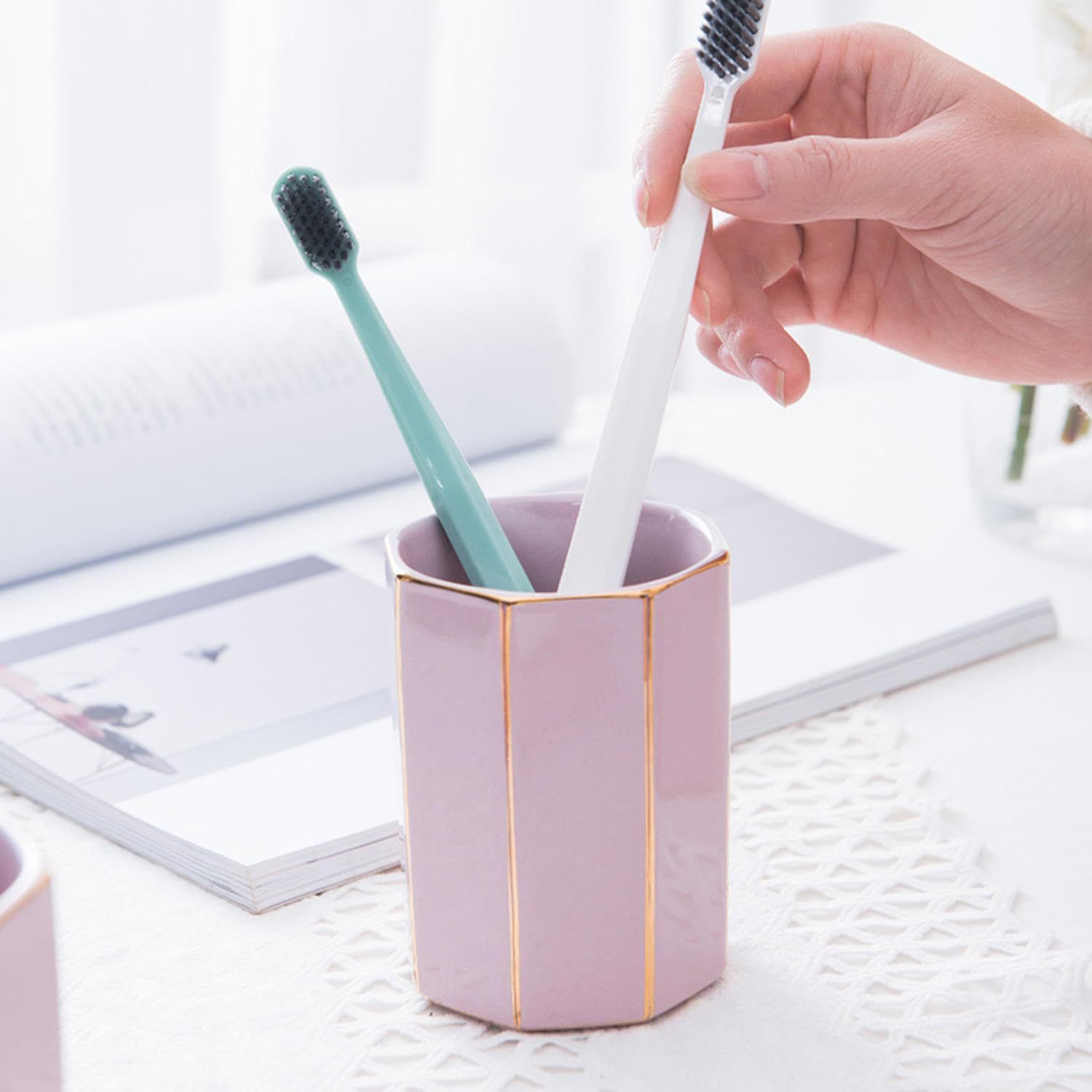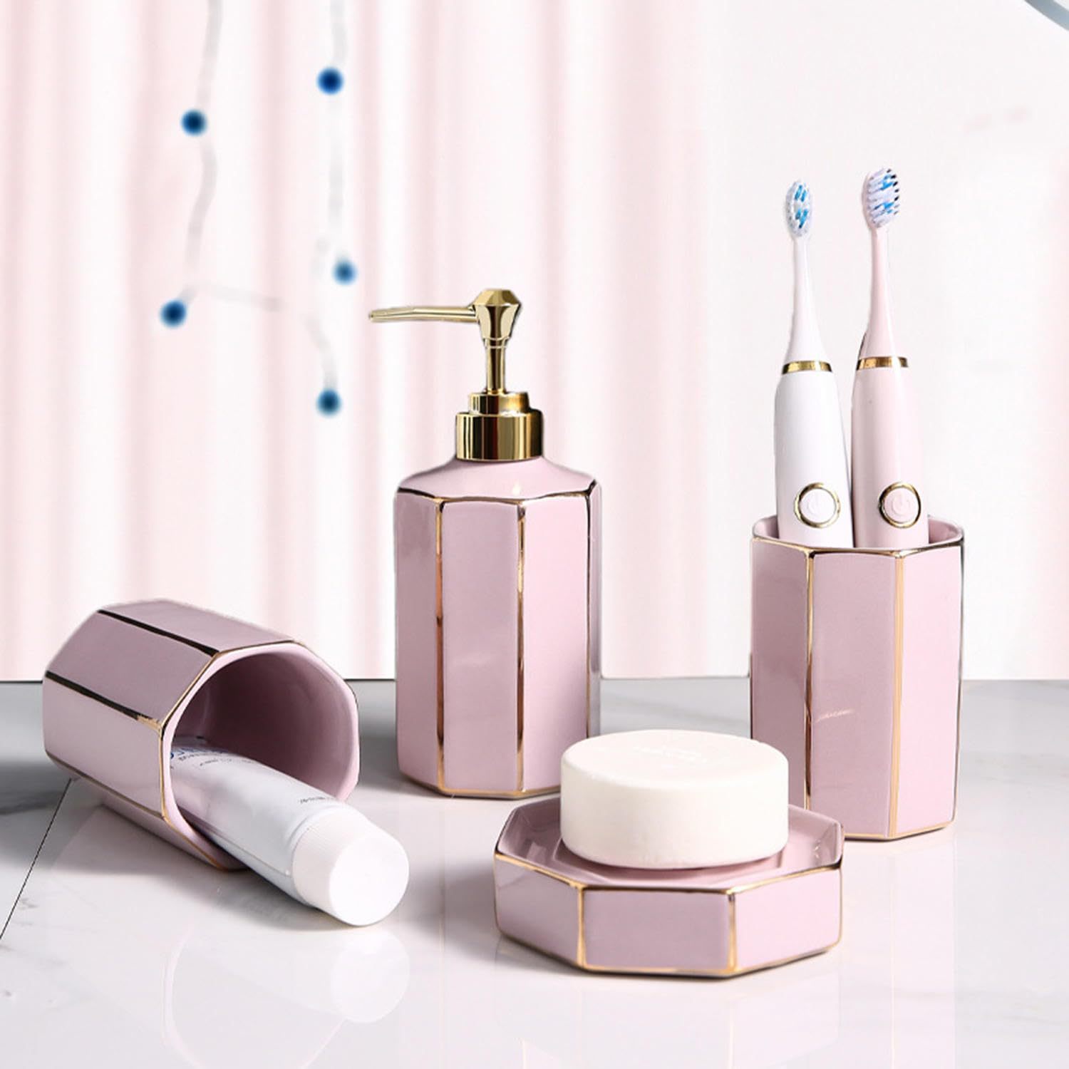 Набор керамической посуды для ванной комнаты с розовой золотой окантовкой, высококачественная чашка для ополаскивателя для дома и отеля, флакон для лосьона, мыльница