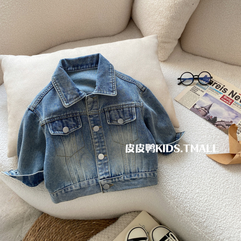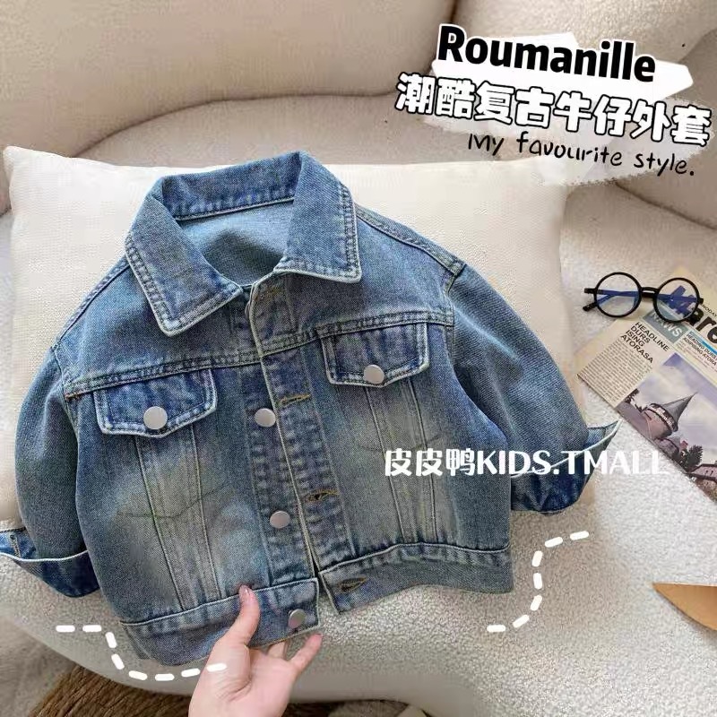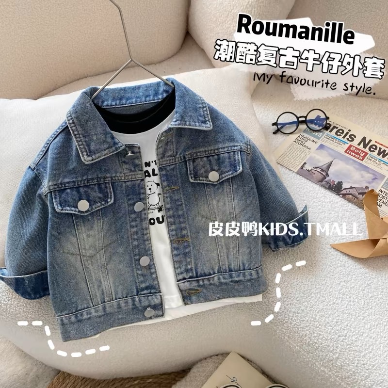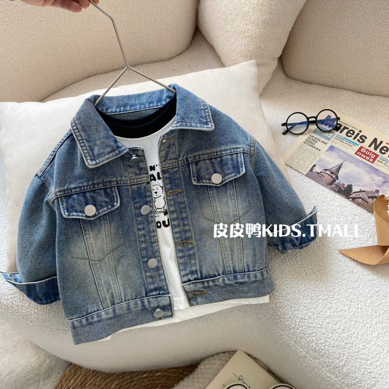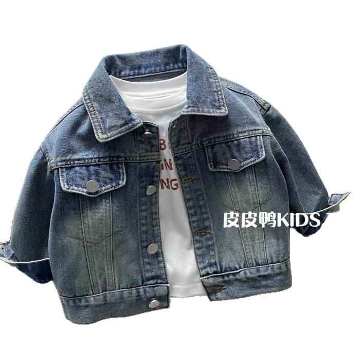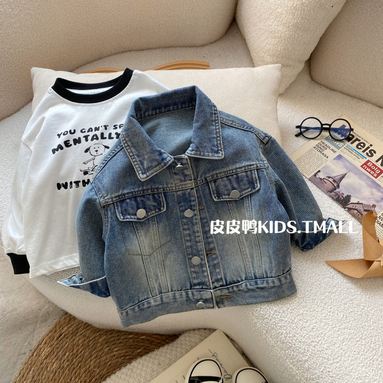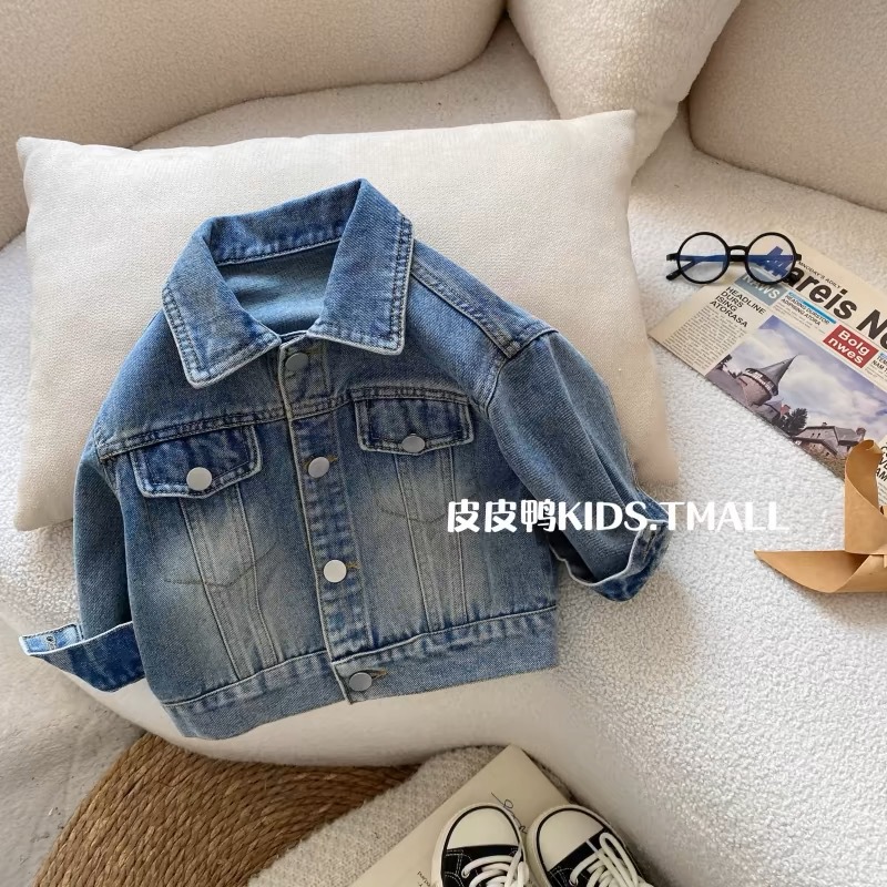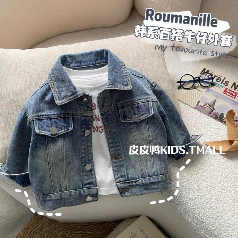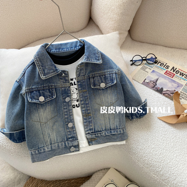 Джинсовая куртка для мальчиков, детская весенняя рубашка, весенне-осенняя стильная рубашка для мальчиков, весенний корейский топ с длинными рукавами для малышей