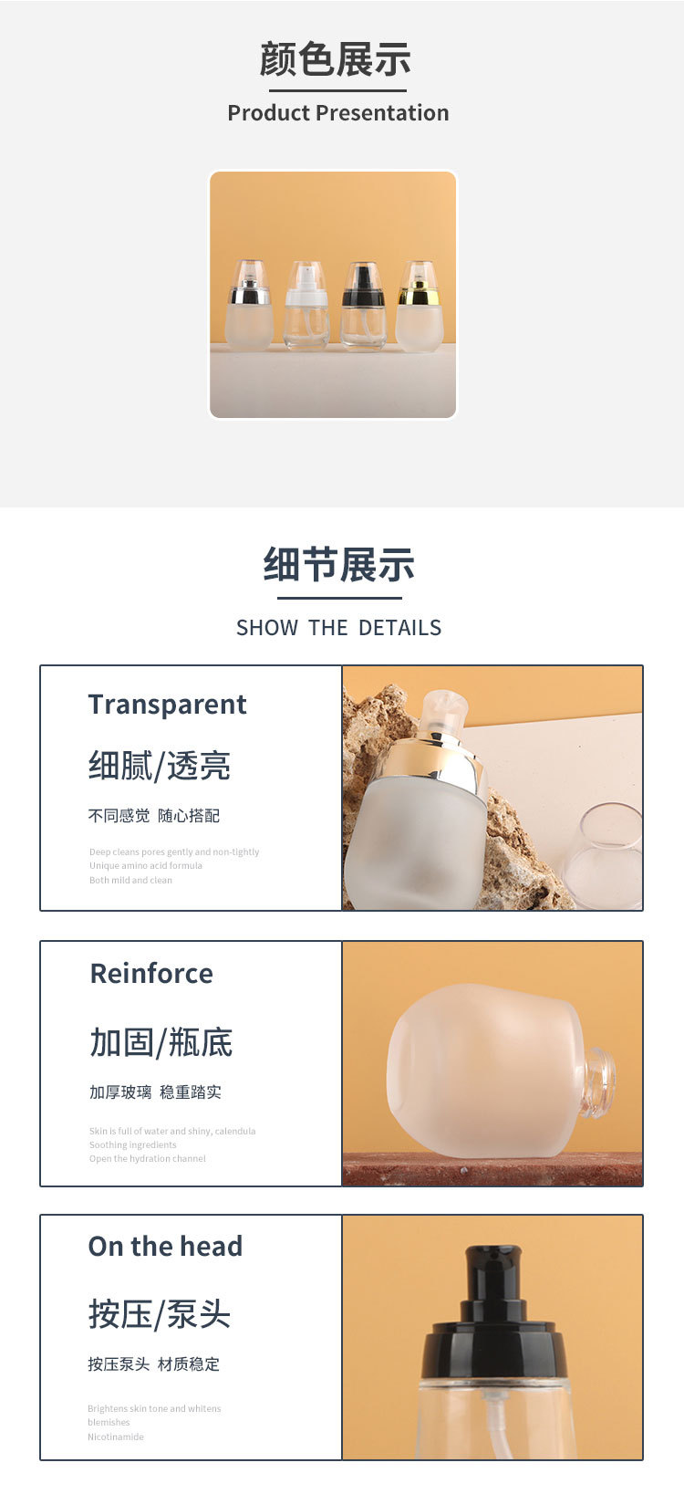 Флакон-помпа из стекла 30 мл, маленький дорожный флакон для лосьона, флакон для тонального крема, оптом, в наличии