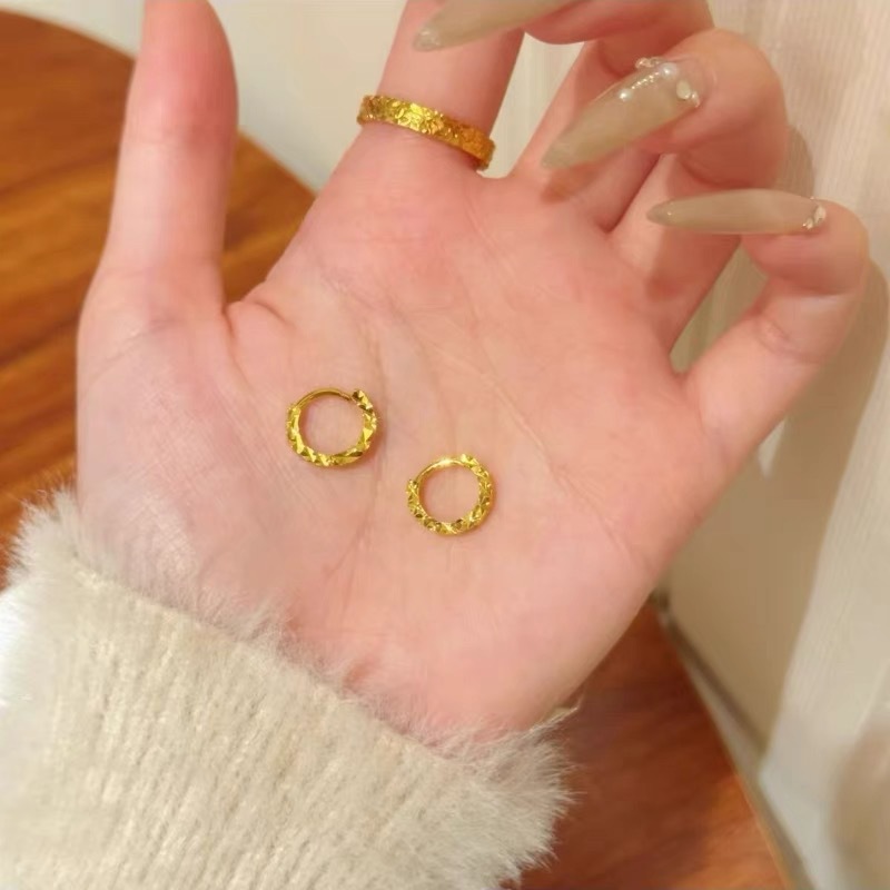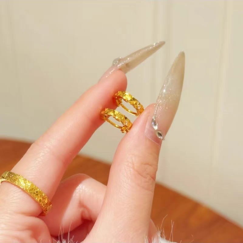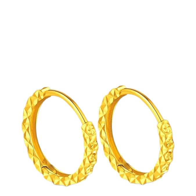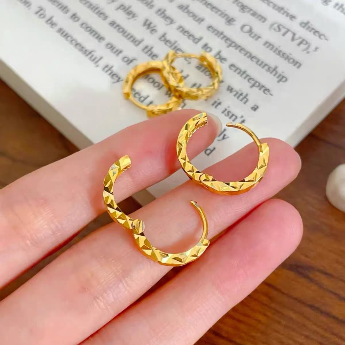 Серьги из золота 18 карат (Au750) с эффектом «дробленого льда», новый стиль, гладкие круглые, с граненым дизайном, элитные, неразъемные.
