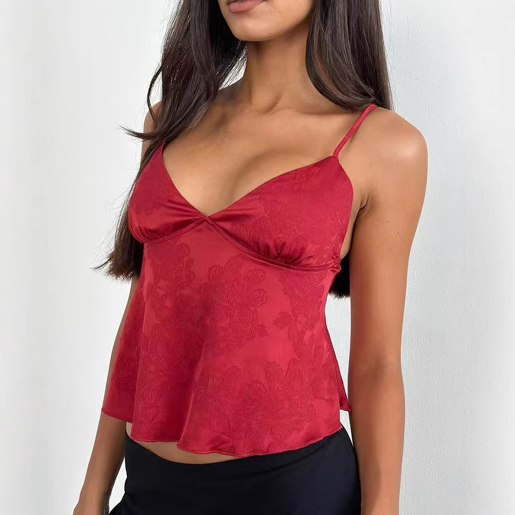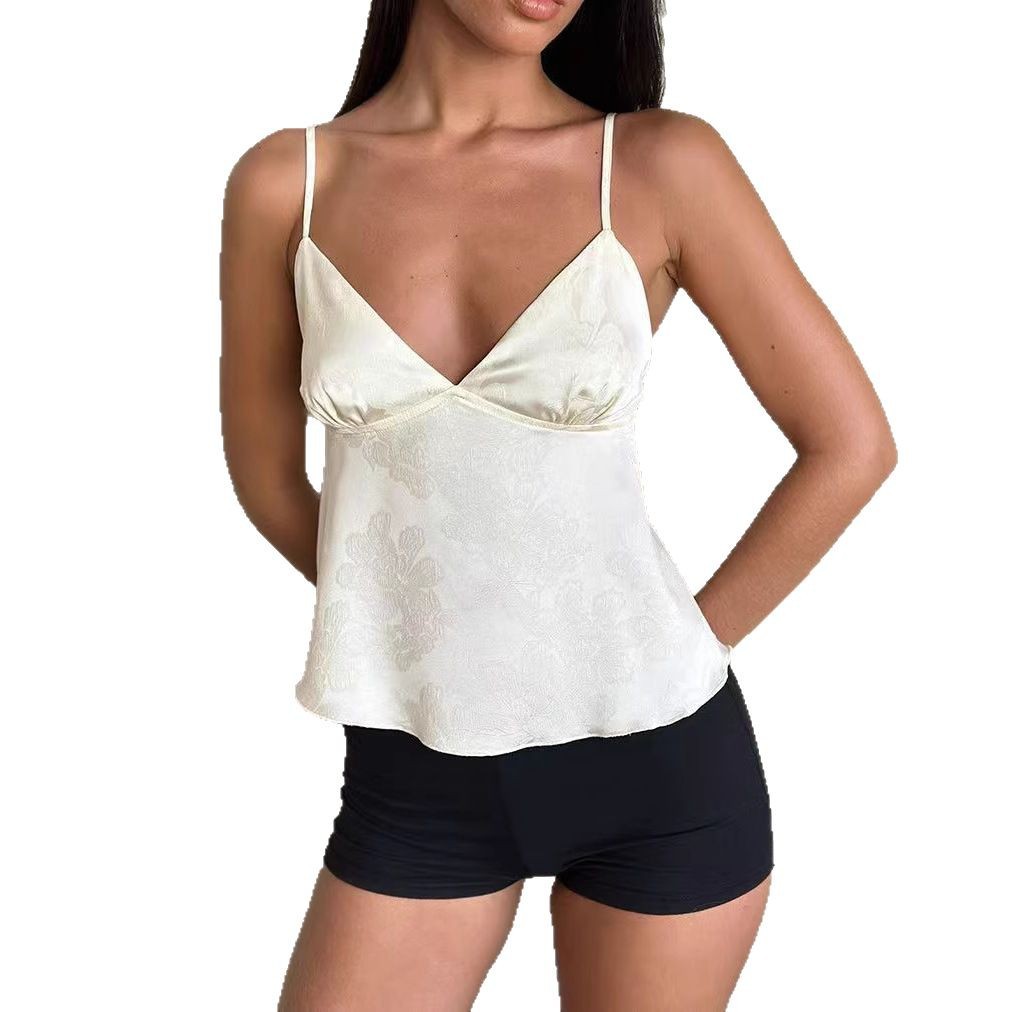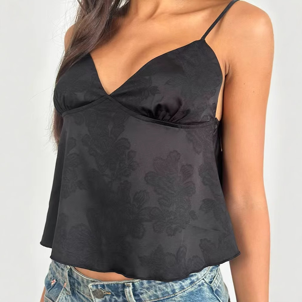 Европейская и американская внешняя торговля, трансграничная новая женская одежда, сексуальная тонкая жаккардовая одежда в европейском и американском стиле с глубоким V-образным вырезом и маленькими подтяжками