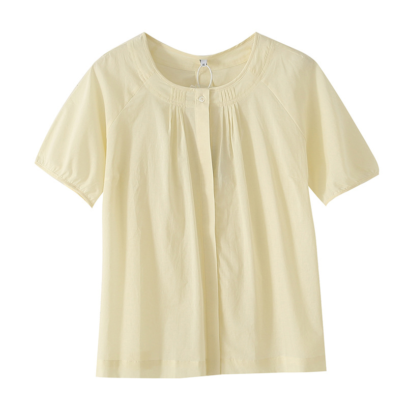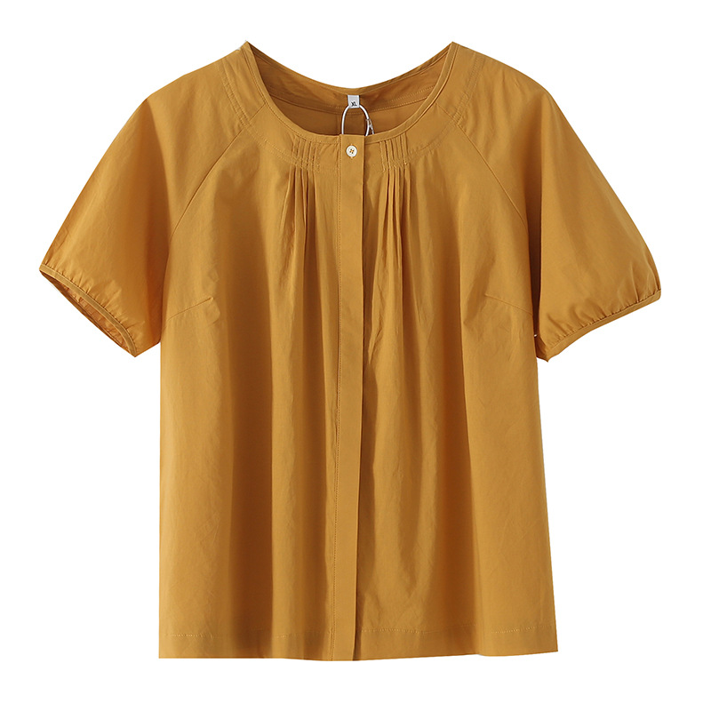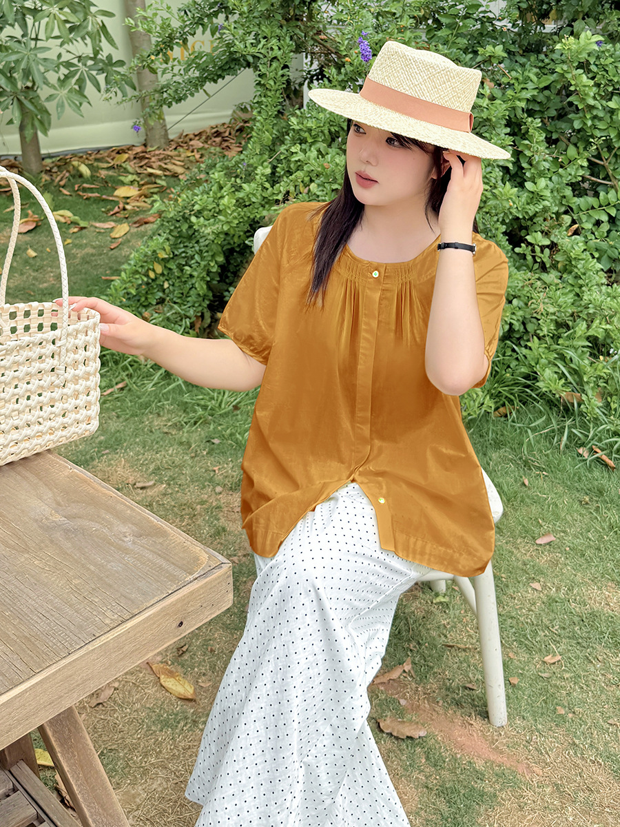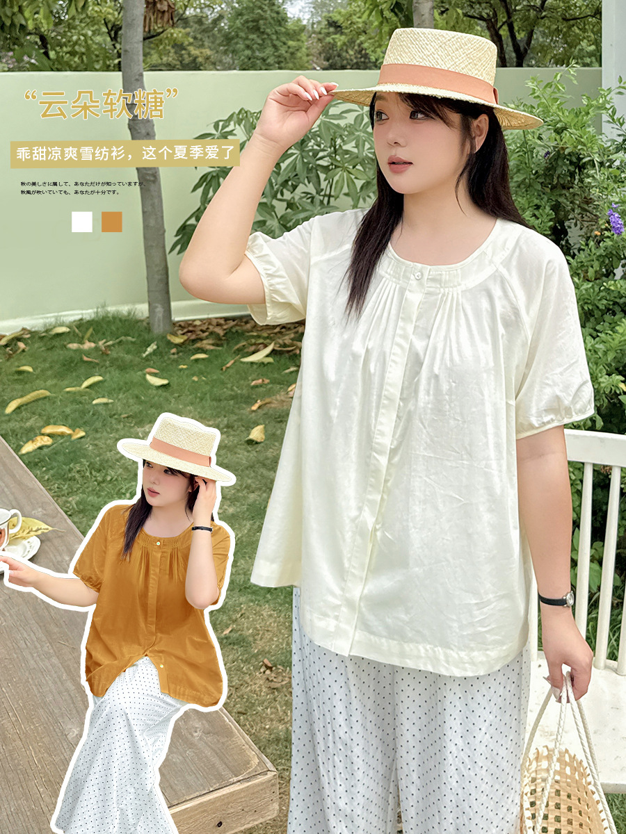Yino большой размер женская одежда chic минималистский шифоновая рубашка с коротким рукавом с круглым вырезом и коротким рукавом, 2025 летний новый сладкий кардиган 212226