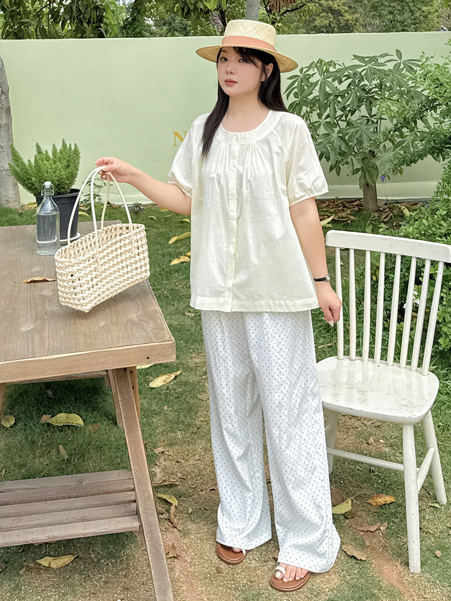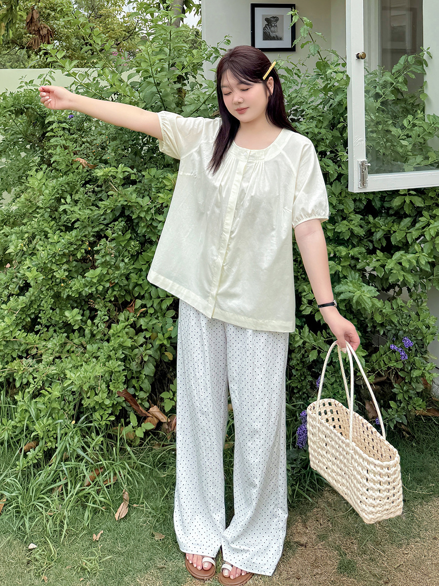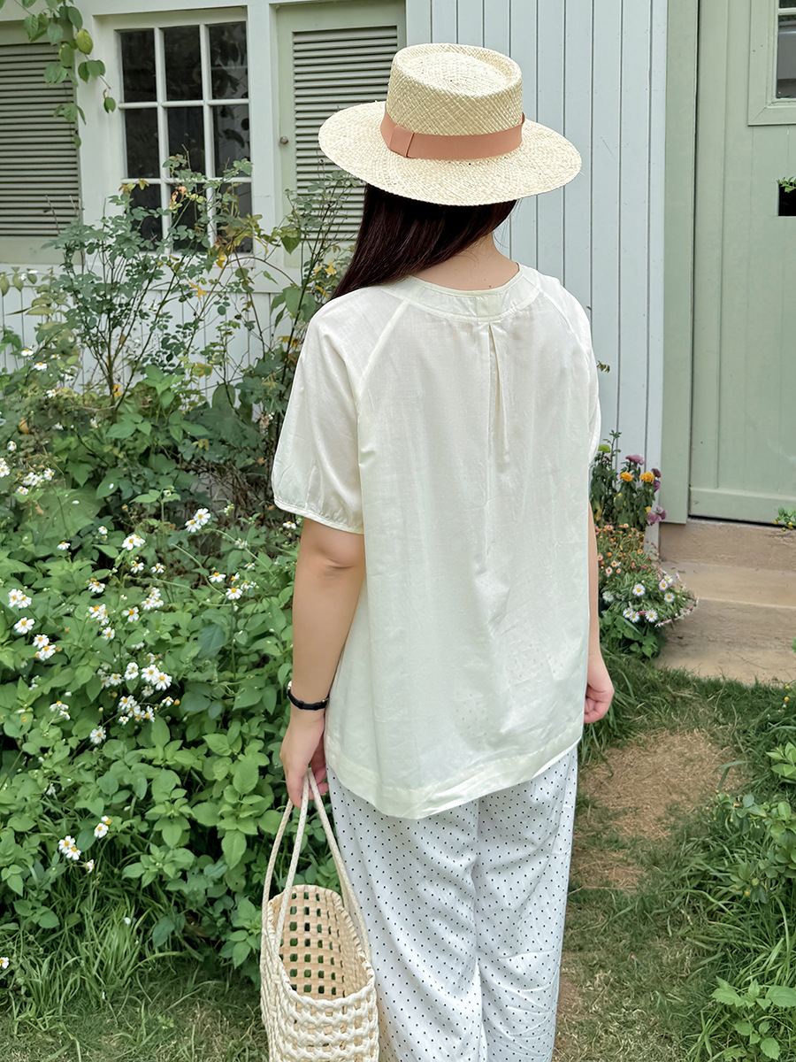 Yino большой размер женская одежда chic минималистский шифоновая рубашка с коротким рукавом с круглым вырезом и коротким рукавом, 2025 летний новый сладкий кардиган 212226