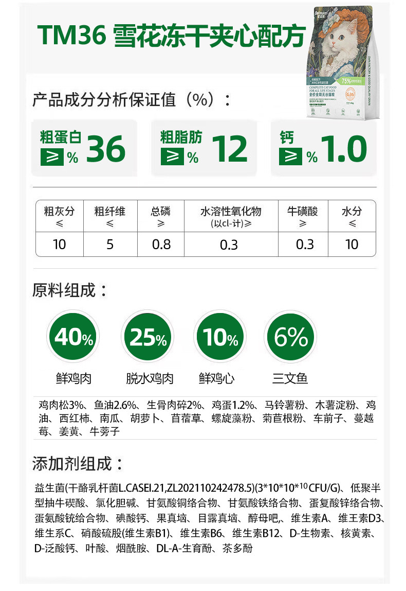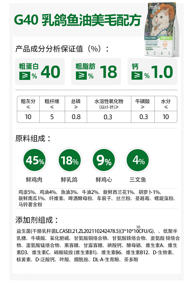 Новый корм для взрослых кошек с 26% белка [2% кусочки сырой кости и мяса] (Loving Cat Food); Новый цельнозерновой корм для кошек с 36% белка (защищает желудочно-кишечный тракт); Новый корм для кошек без зерна с 40% белком из перепелиного корма (для блестящей и здоровой шерсти); Новый корм для котят с 42% белком ( Colostrum + сыр); Новый беззерновой корм для кошек с 45% белка (84% свежего мяса для набора веса и развития); 41% белковая низкотемпературная запеченная корм для кошек [пробиотическая формула для красоты волос]; Новая выпечка с 44% белка по полной цене (крепкое телосложение); Сэндвич-корм для кошек с козьим молоком и голубом (усилит иммунитет); Сэндвич-корм для кошек с треской и сыром (красивая и блестящая шерсть); Сэндвич-корм для кошек с кроличьим мясом и клюквой (мочегонный и защитный для желудка); Puff Feast (сэндвич-зерновые хлопья с разными вкусами)