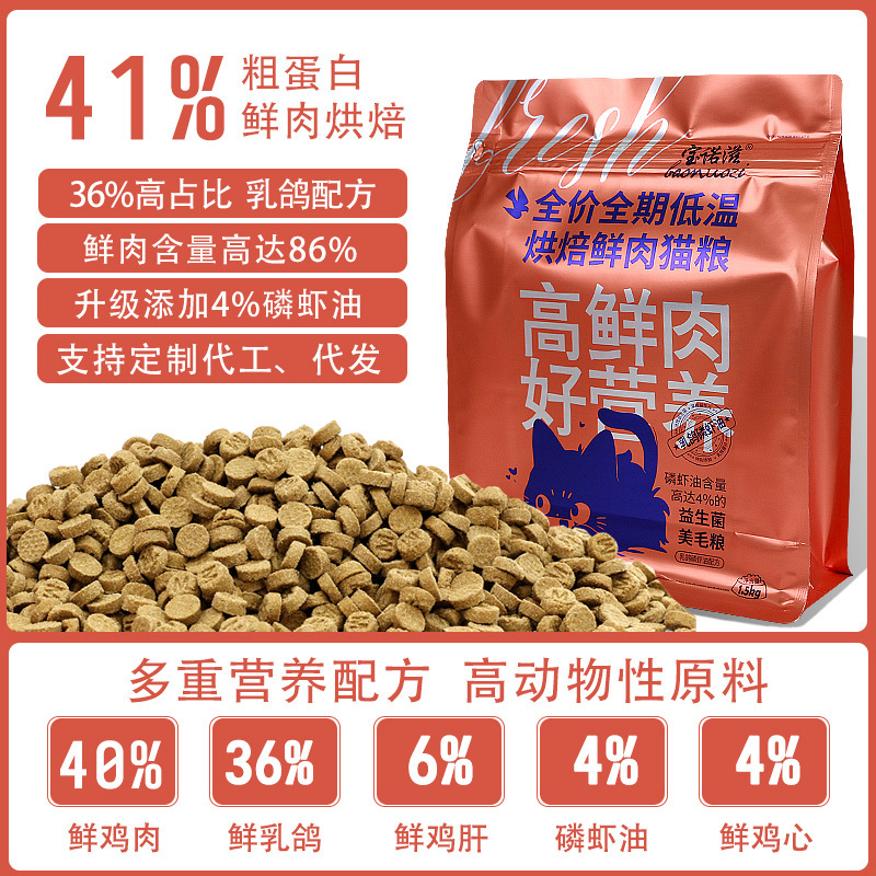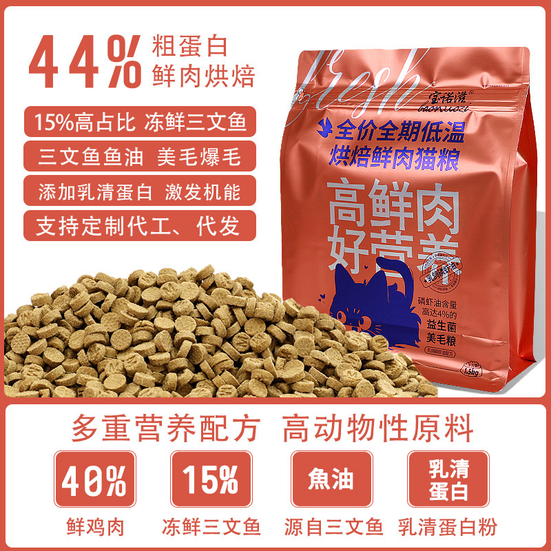 Изготовление кормов для кошек на заказ, беззерновое, из свежего мяса, полноценное, жареное, хрустящее, в форме сэндвичей, оптовая продажа, OEM-производство кормов для кошек