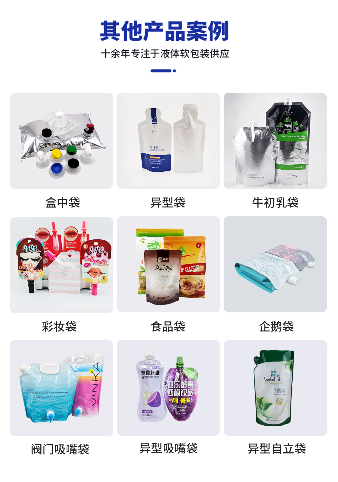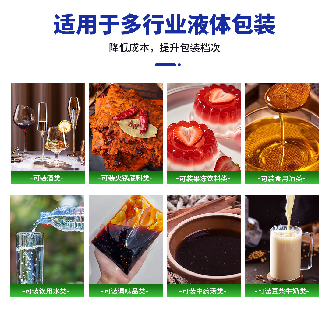 Общая упаковка; упаковка пищевых продуктов; Упаковка предметов первой необходимости; Химическая упаковка; Упаковка алкогольных напитков; Красота и ежедневная химическая упаковка
