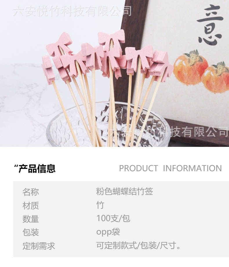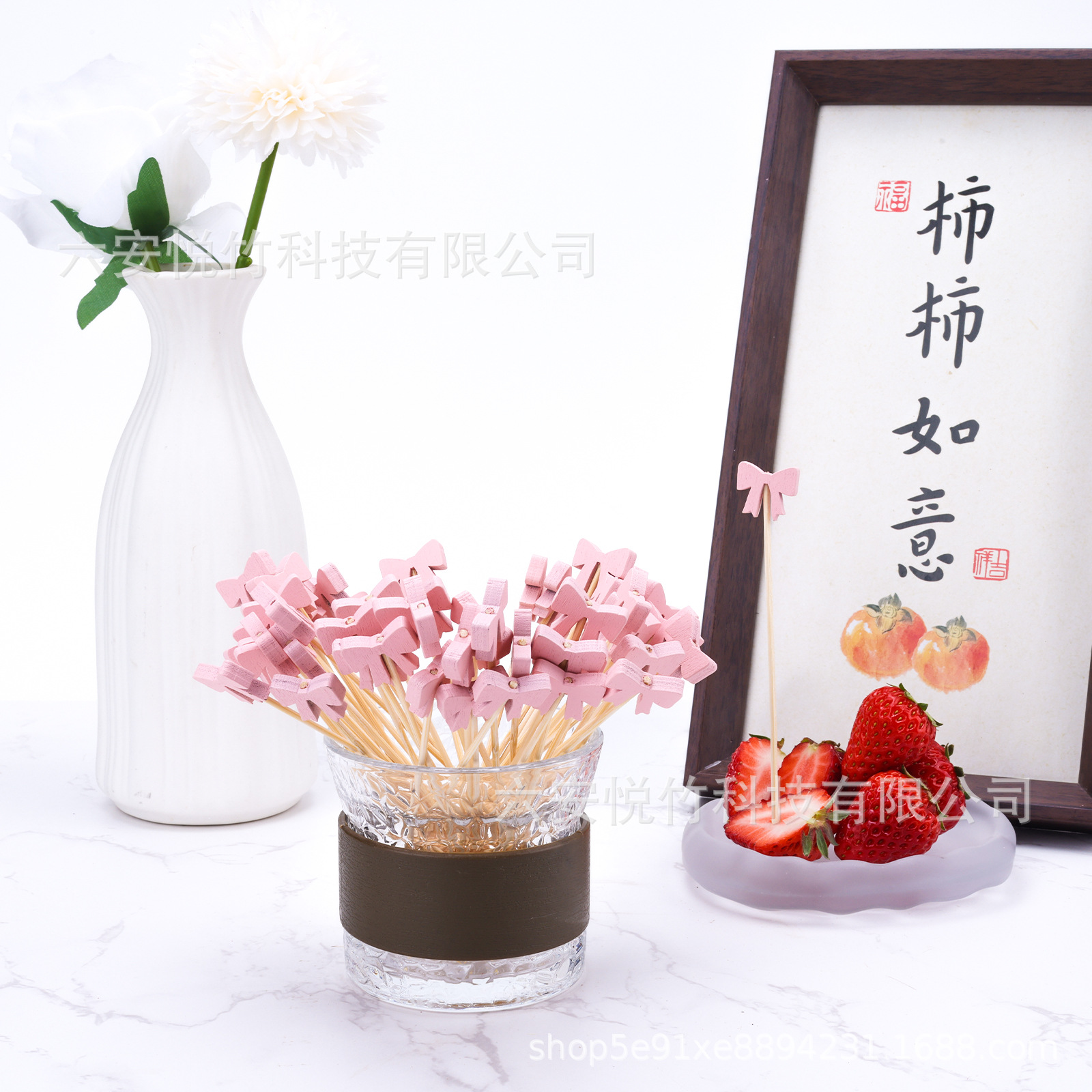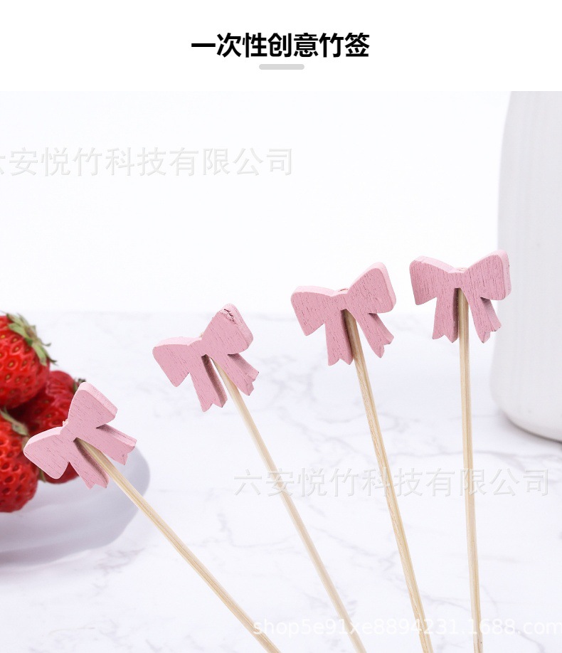 Симпатичные зубочистки Закуски шампурные принадлежности для вечеринок Одноразовые фруктовые флажки розовые банты для украшения коктейлей