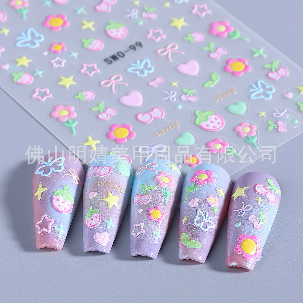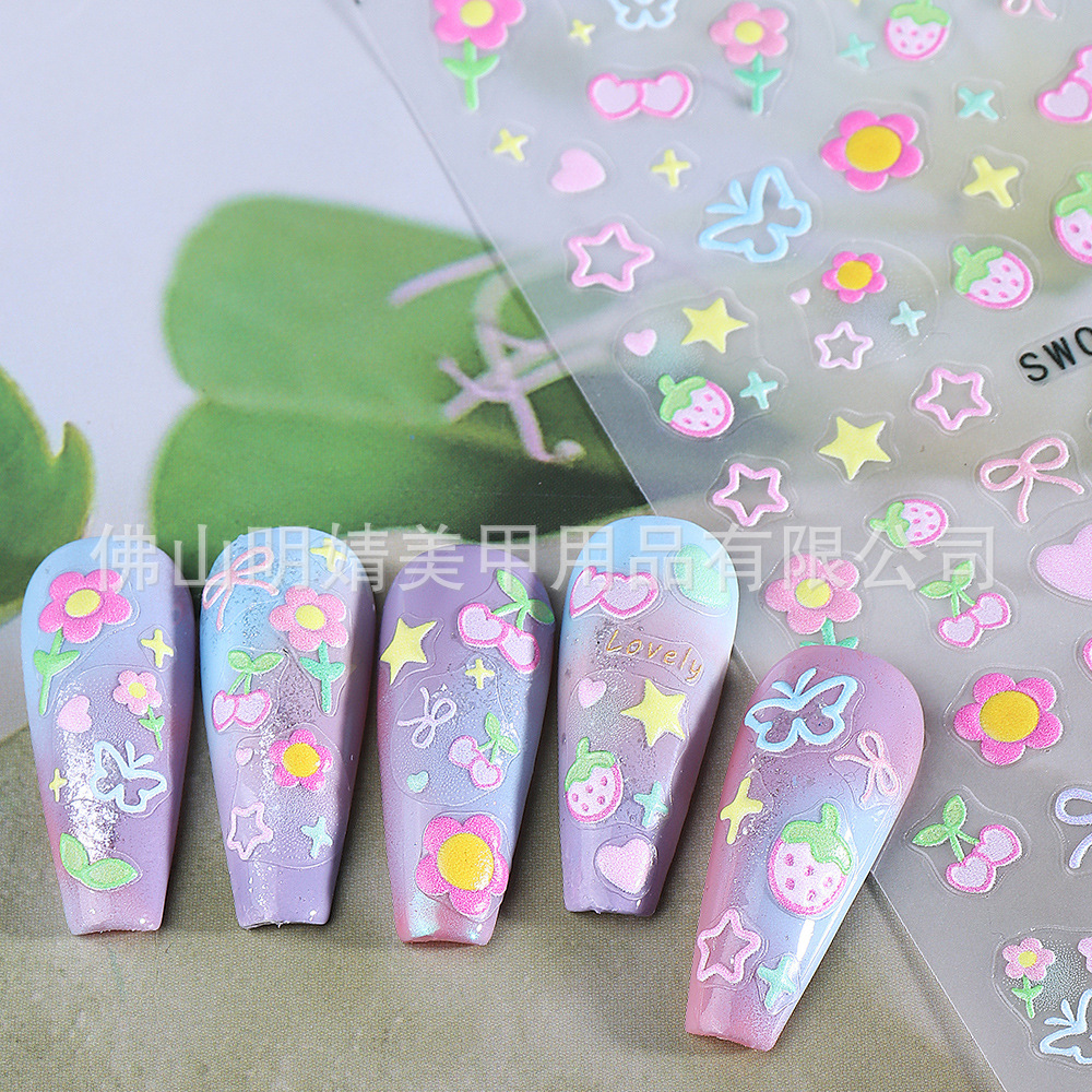2025 новых наклеек для ногтей в стиле ins, летние макаронные конфеты, милые вишнево-клубничные сердечки