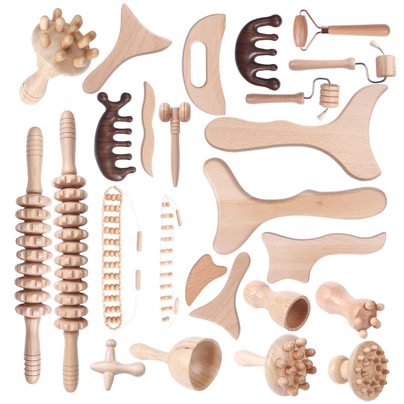Массажная палочка из массива бука, массажная чашка, меридиан, скребок для очистки сухожилий, роликовый массажер с головкой, набор инструментов