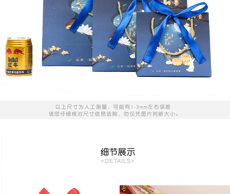Сумка для лунных пирожных с откидной крышкой, синяя; Сумка для лунного пирога с откидной крышкой красного цвета; Открытый пакет с красным лунным пирогом; Открытый пакет с лунными пирожными синего цвета