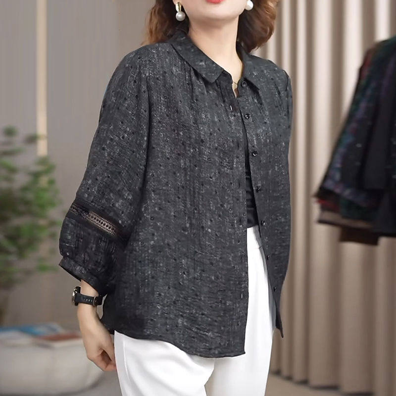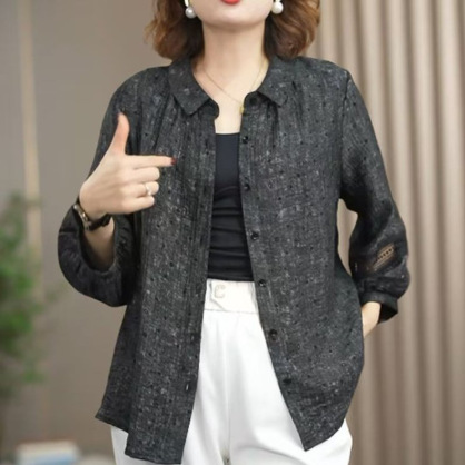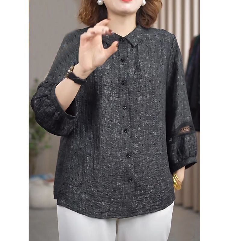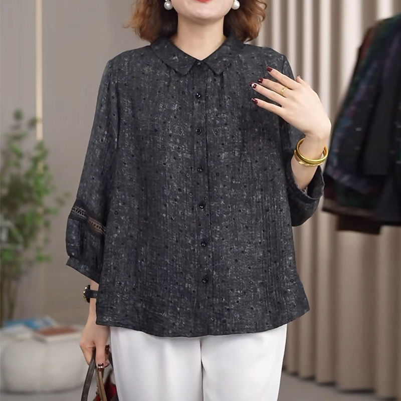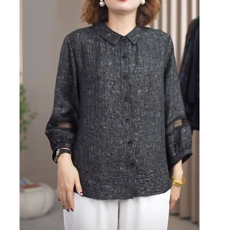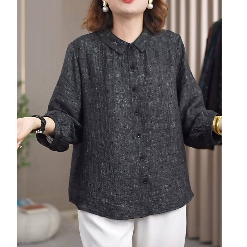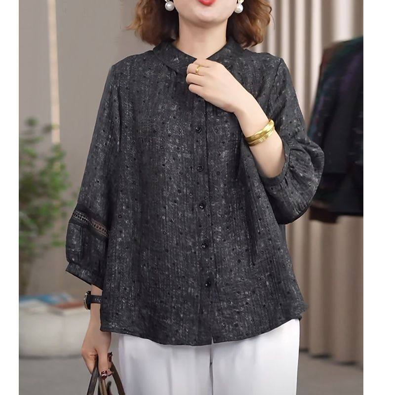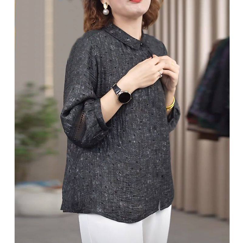 Мама повседневная дикая новая рубашка 2025 новая весенняя рубашка женский большой размер свободный хлопок льна рубашка среднего и пожилого возраста дышащий топ