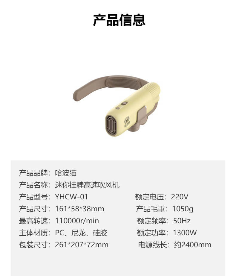 Фен для волос Hibo Cat, специальный для домашних животных, висящий на шее, выдувной артефакт для купания и сушки собак, выдувной и вытягивающий все в одном