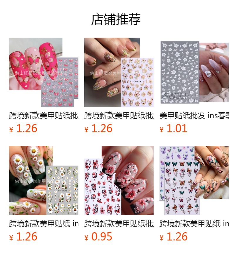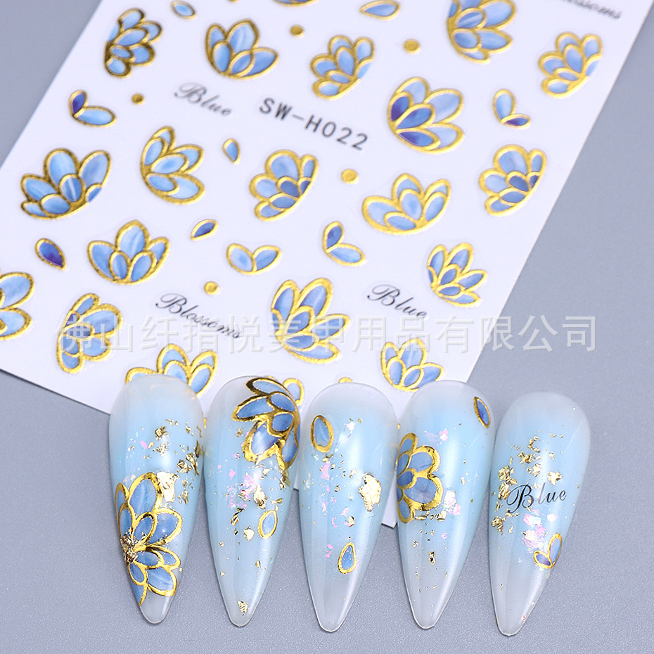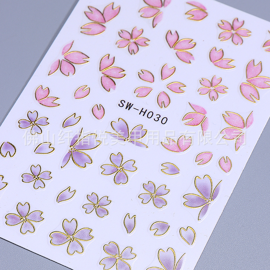 Трансграничные горячие наклейки для дизайна ногтей оптом ins в японском стиле горячее тиснение лепестки вишневого цвета листья маленькие свежие весенние и летние наклейки для ногтей