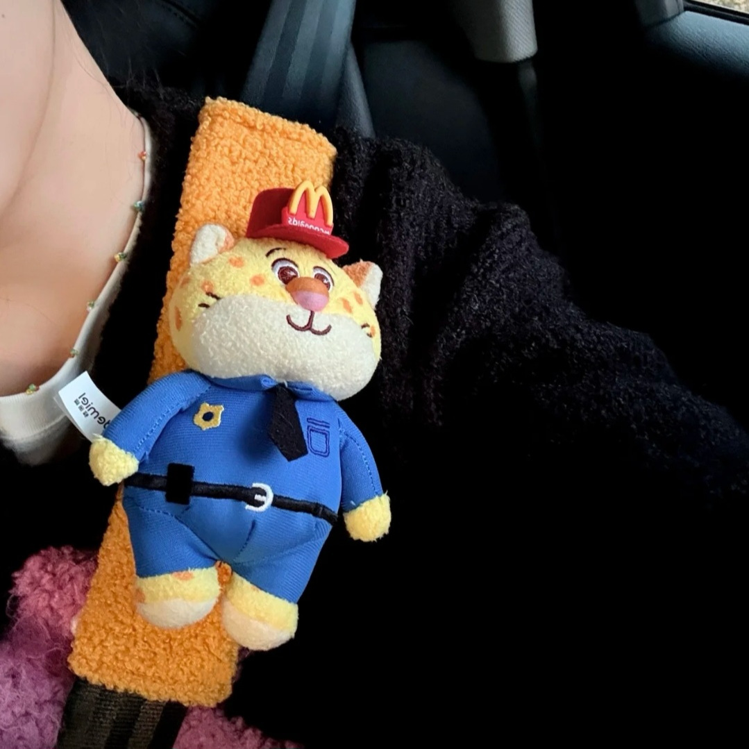 Аутентичный Zootopia Lightning Leopard Police Officer Автомобильный ремень безопасности Наплечный чехол Мультяшная мягкая кукла Чехол против удушения