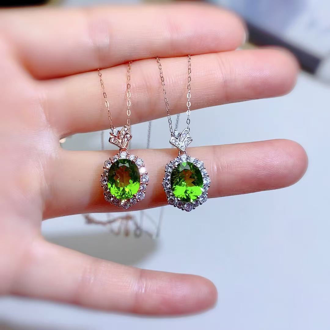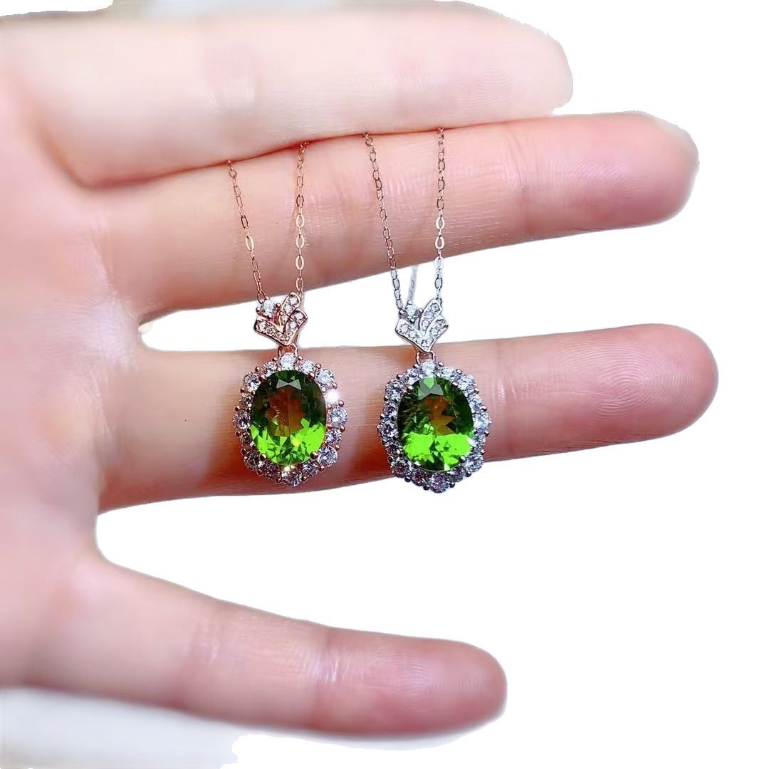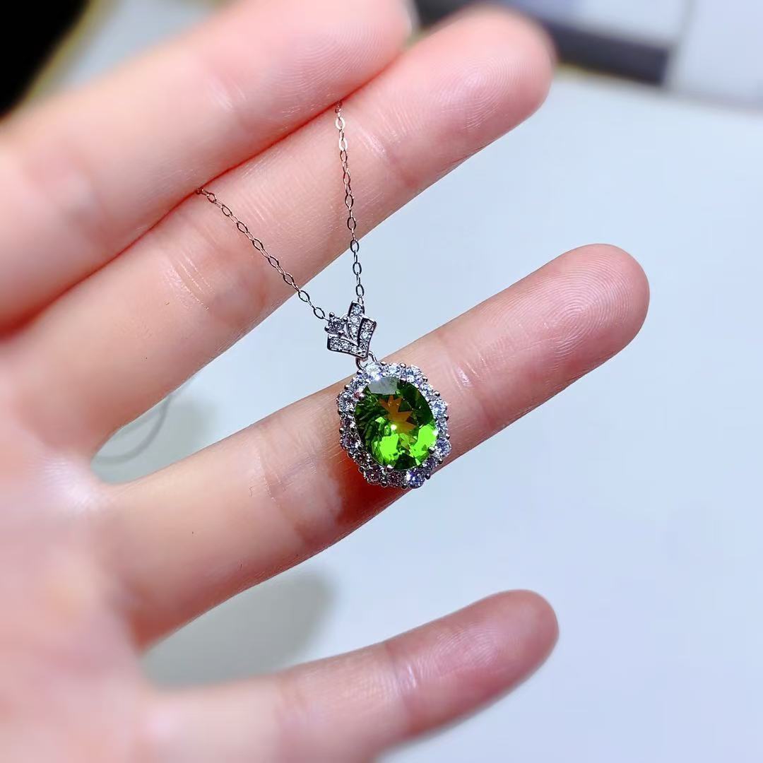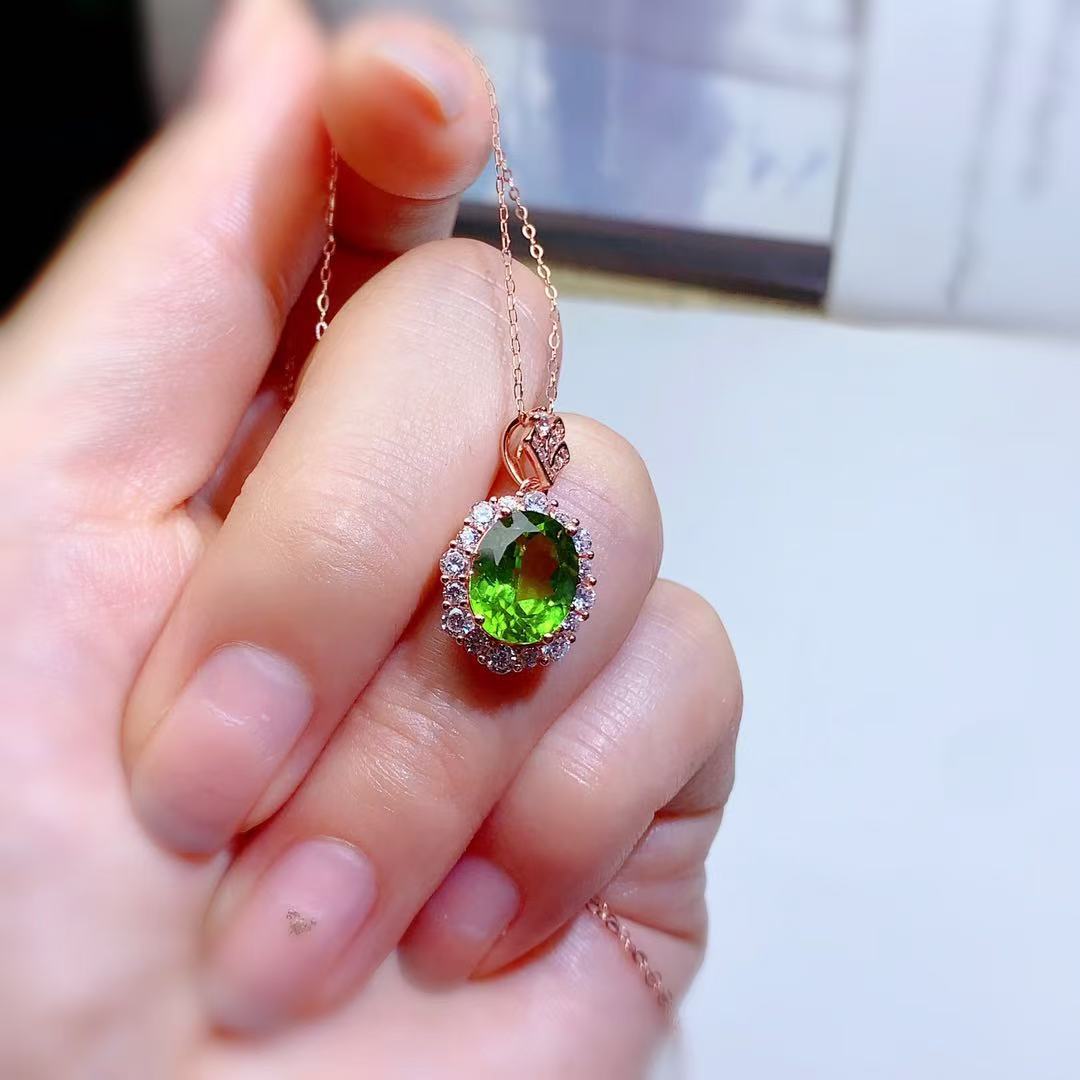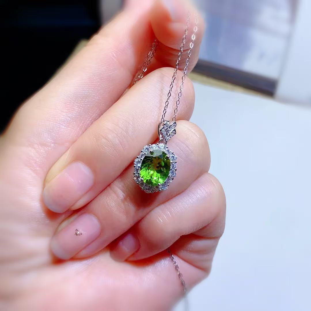 Подвеска из стерлингового серебра 925 пробы с инкрустацией натурального перидота, зеленая доступная роскошная умная милая высококачественная цветная цепочка на ключицу с драгоценными камнями
