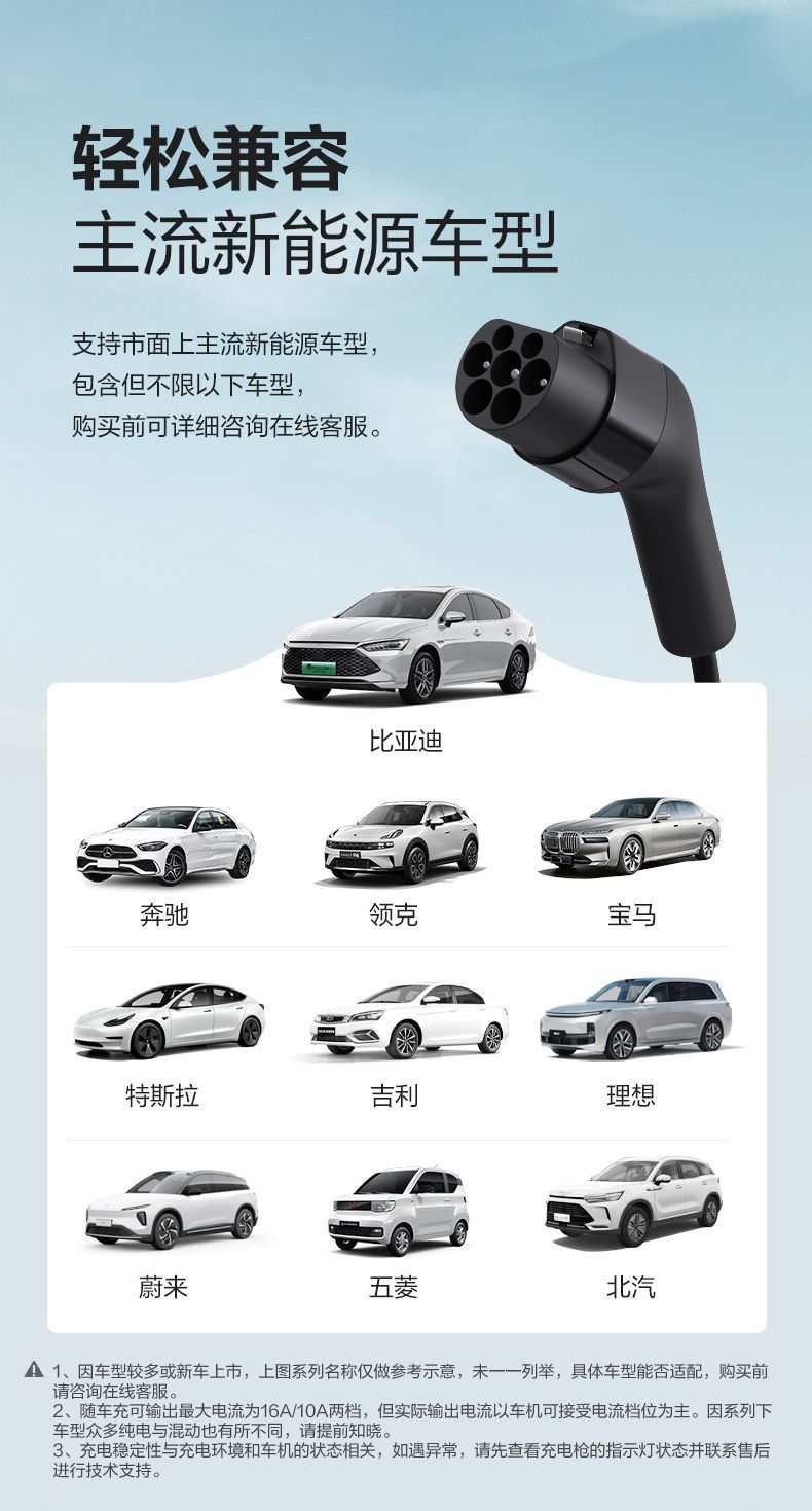 Удобная модель [3,5 кВт, 2 уровня мощности]; Стандартная модель [2,8 кВт, 2 уровня тока]; Модель [3,5 кВт, 4 уровня тока]; Модель Bluetooth [управление мобильным телефоном мощностью 3,5 кВт]; Модель Tesla [открытие одним щелчком мыши мощностью 3,5 кВт]; Модель Ocean Blue [Специальная модель BYD мощностью 3,5 кВт]; Мощный пистолет [необходимо установить 7 кВт]; Комбинированный пистолет высокой мощности [3,5/7 кВт]; Комбинированный зарядный пистолет [3,5/7 кВт]; Комбинированный зарядный пистолет + подвеска [3,5/7кВт]; Комбинированный зарядный пистолет [3,5/11 кВт]; Комбинированный зарядный пистолет + подвеска [3,5/11кВт]