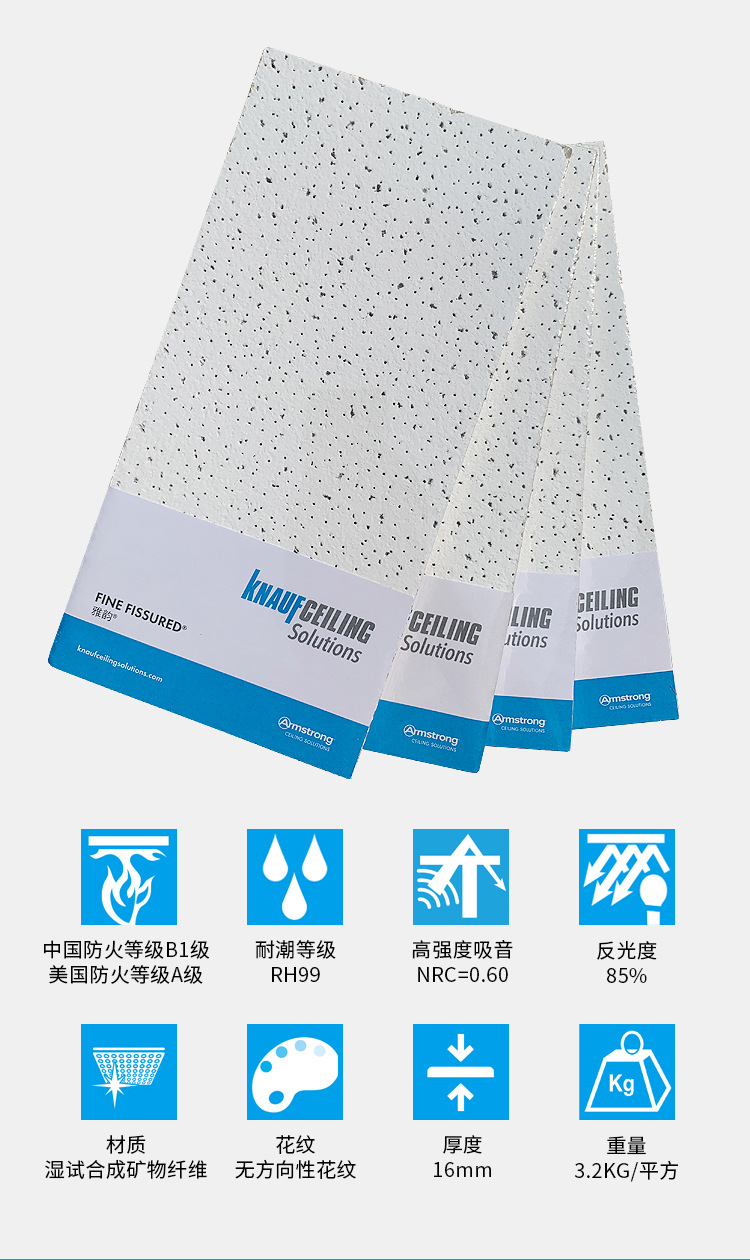 Панель из минеральной ваты Armstrong Yayun RH99, влагостойкая, 600*600, плоская, 1734M, звукопоглощающий материал для потолка "Дыхание младенца"