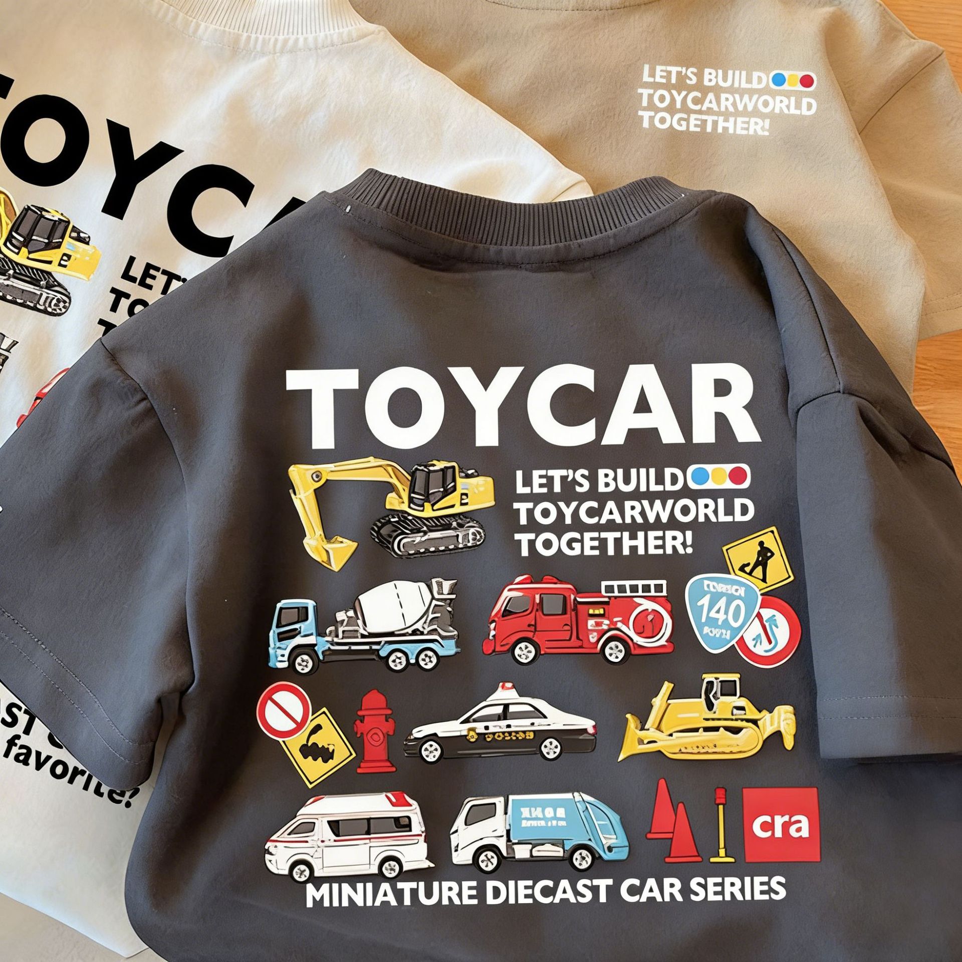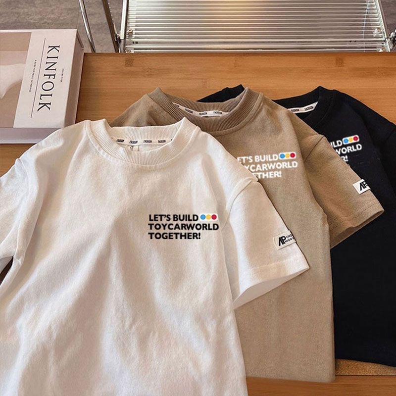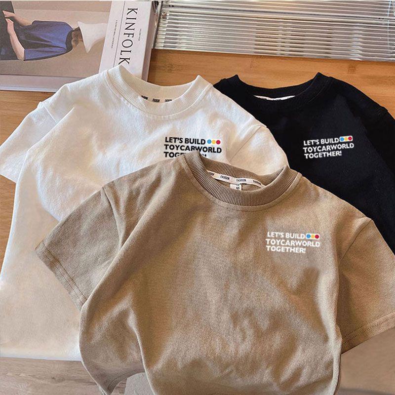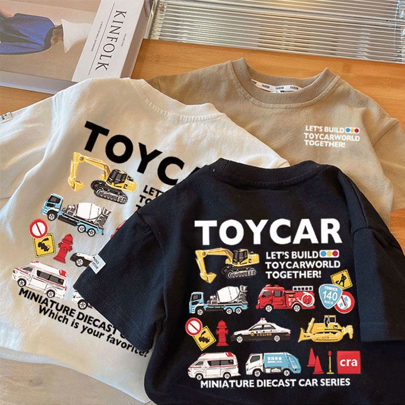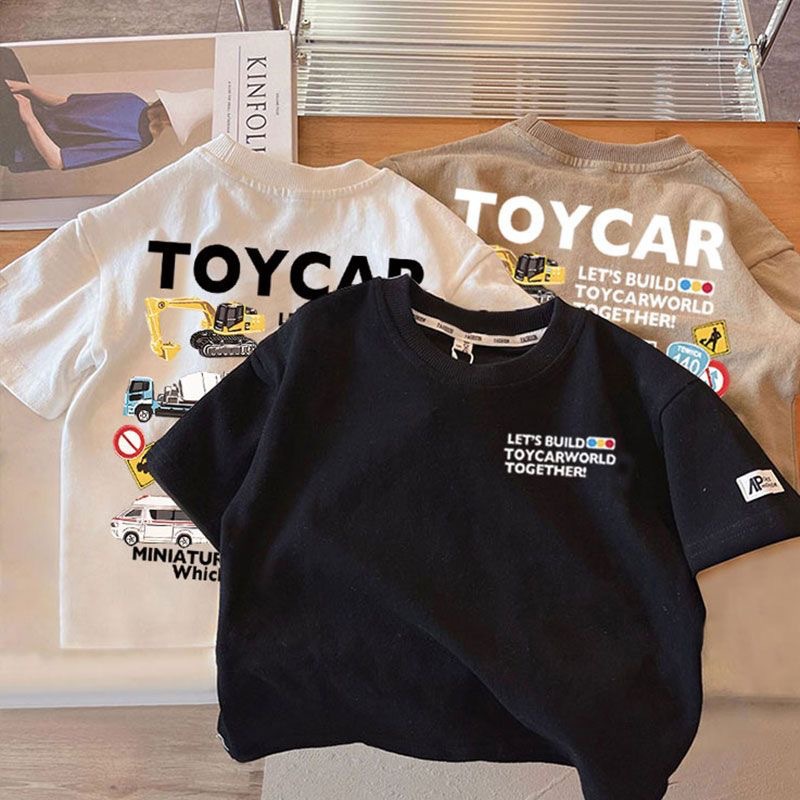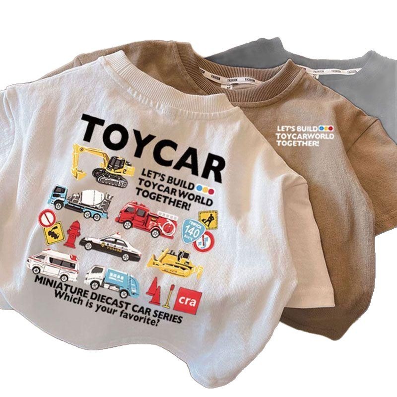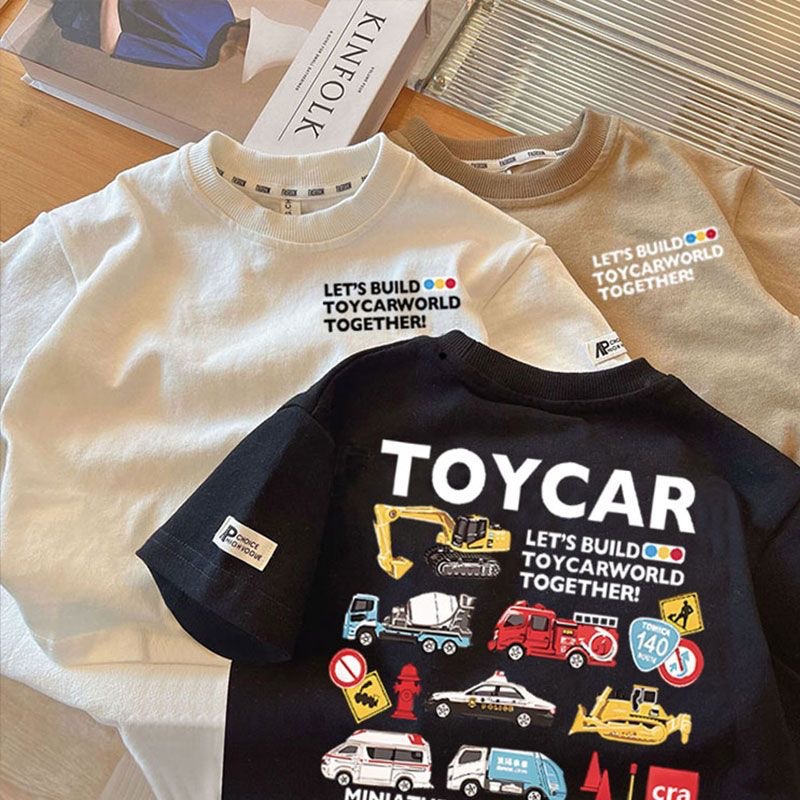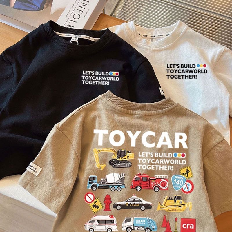 Летняя футболка из чистого хлопка с короткими рукавами для мальчиков и девочек, детский топ с круглым вырезом в автомобильном стиле, свободная и забавная одежда для малышей, необычная детская одежда.