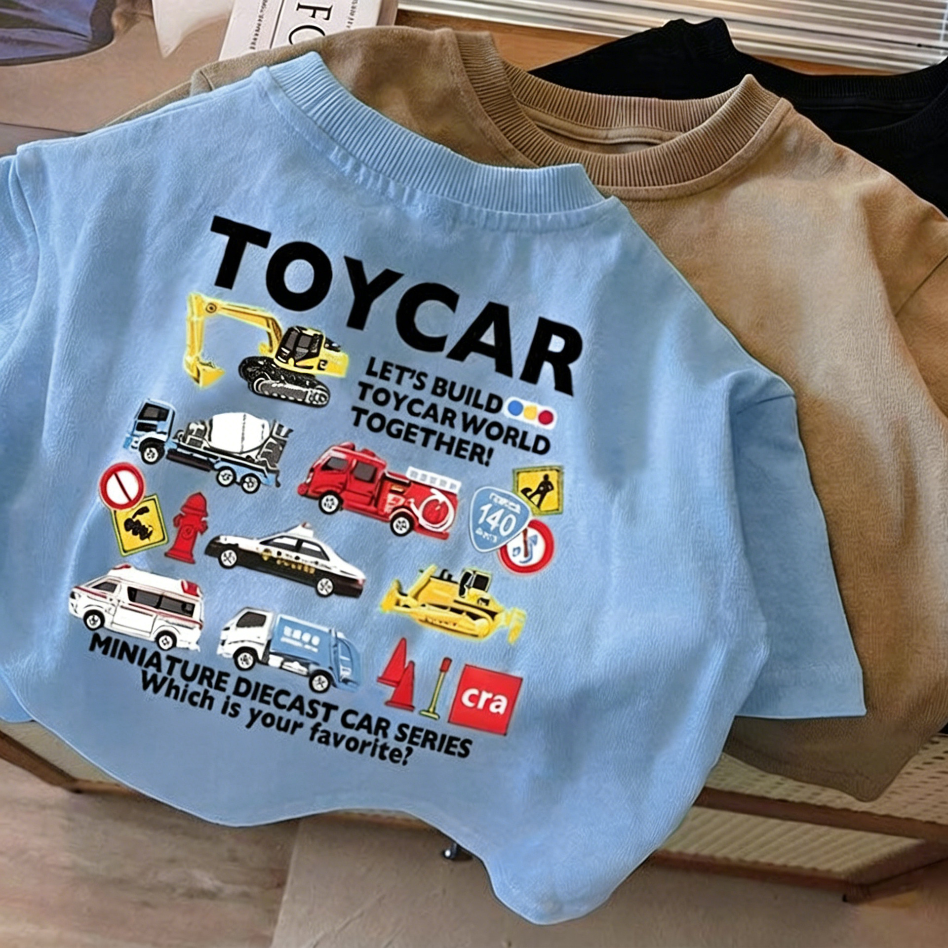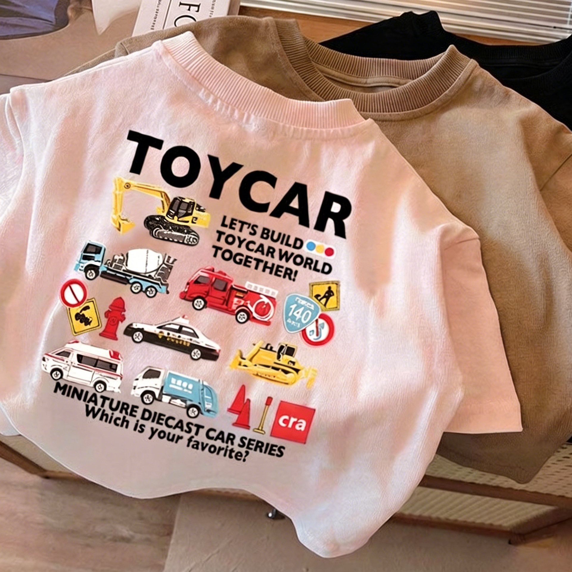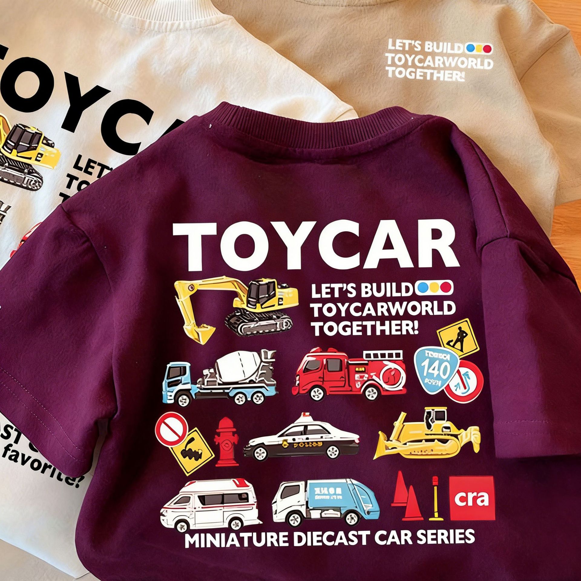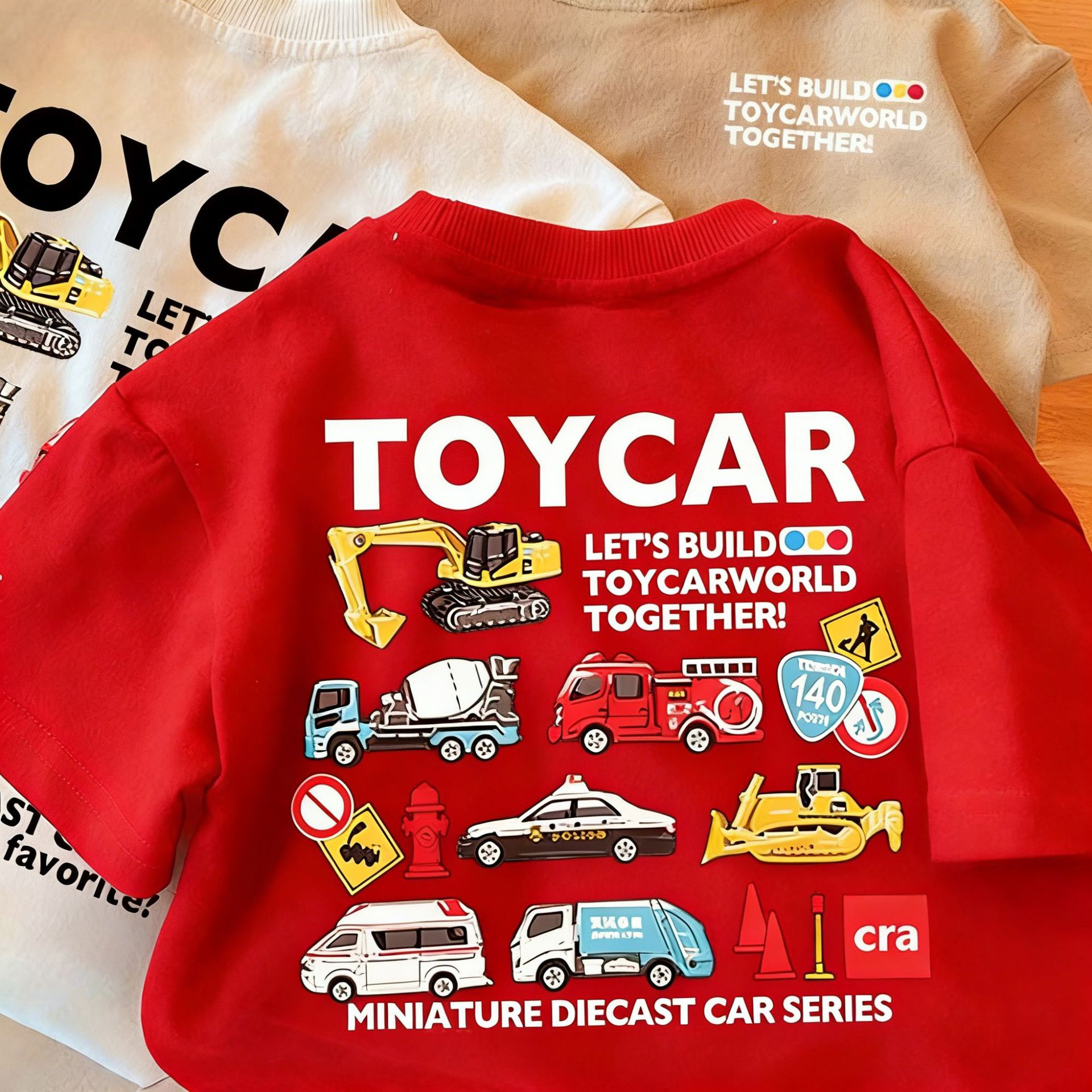 Летняя футболка из чистого хлопка с короткими рукавами для мальчиков и девочек, детский топ с круглым вырезом в автомобильном стиле, свободная и забавная одежда для малышей, необычная детская одежда.
