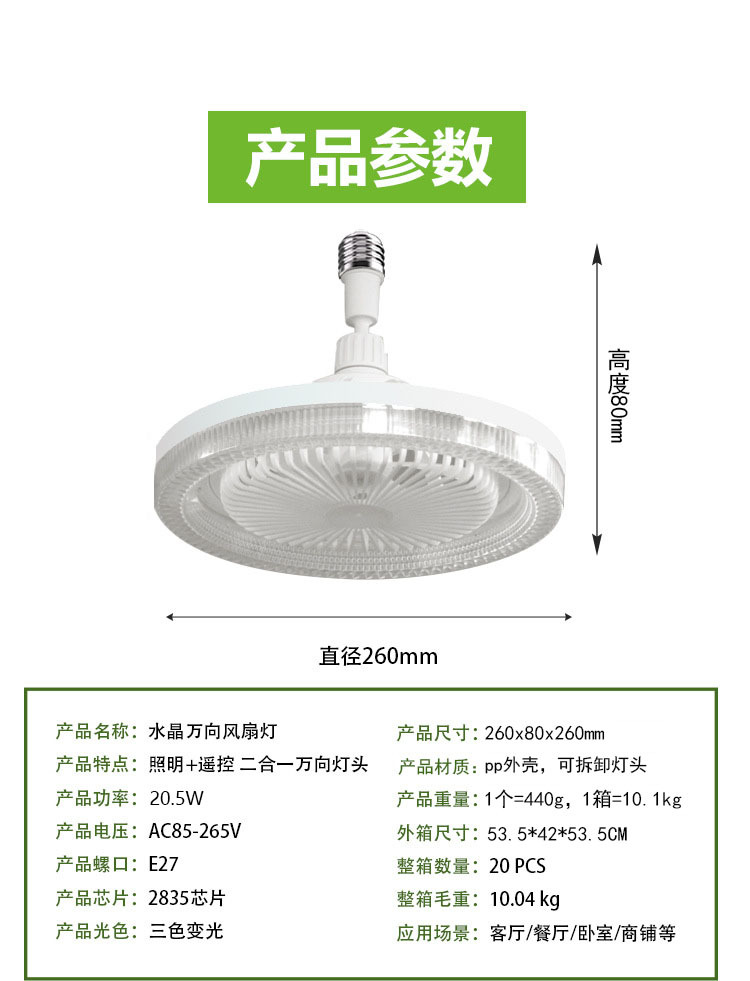 E27 кристаллический универсальный вентилятор с головкой