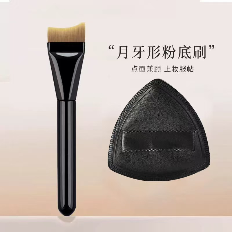 Кисть для тональной основы Crescent, черная, с плоской изогнутой головкой, не впитывает пудру, кисть для масок, для равномерного нанесения, без следов кисти, кисть для макияжа, мягкая щетина, для жидкой основы.