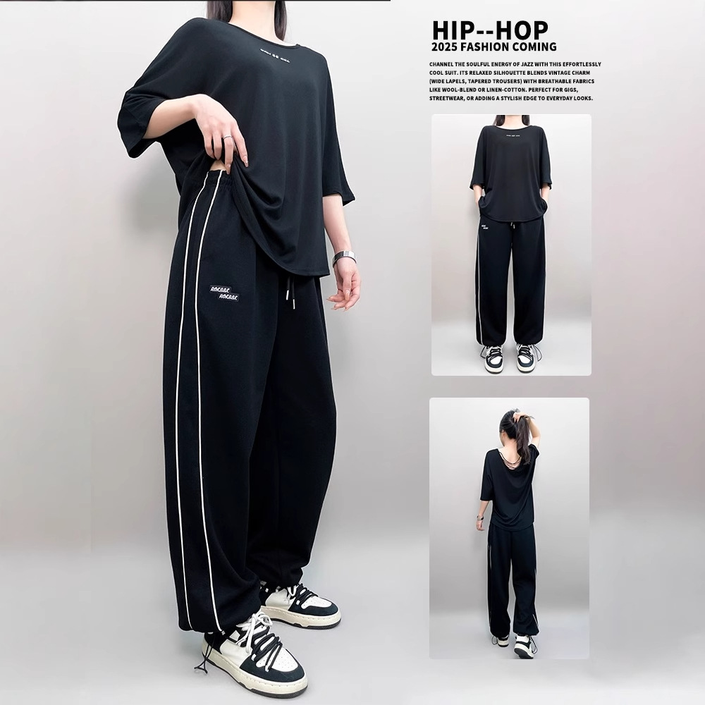 Уличные танцы, модный бренд, свободные вышитые линии, джазовые танцы, хип-хоп, женские спортивные джазовые брюки, модный комплект