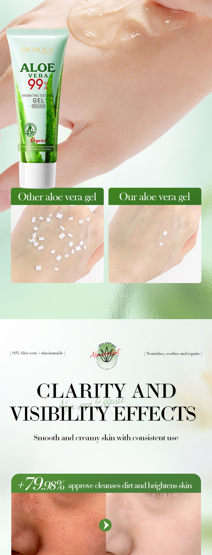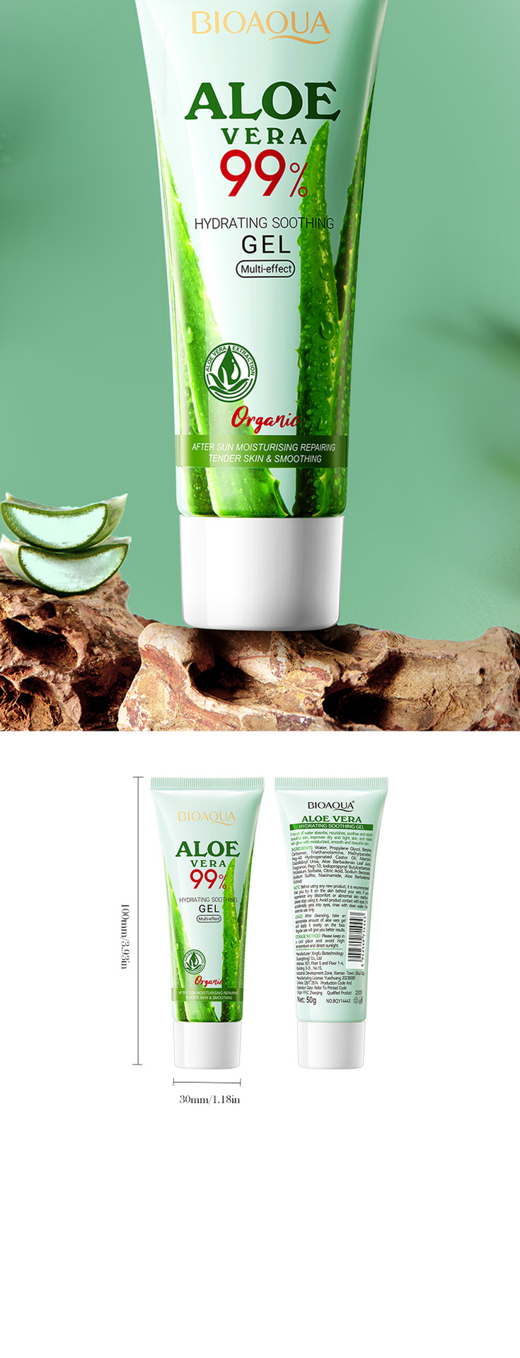 Полный английский клей алоэ вера BIOAOUA увлажняющий успокаивающий гель алоэ вера Aloe vera красивый и омолаживающий трансграничный внешняя торговля