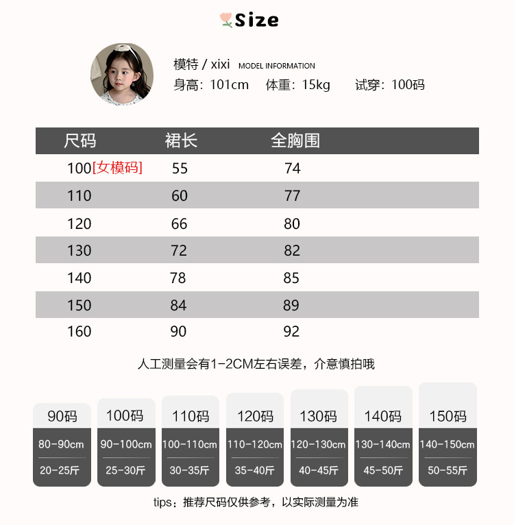100cm; 110cm; 120cm; 130cm; 140cm; 150cm; 160cm