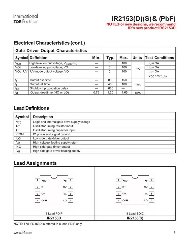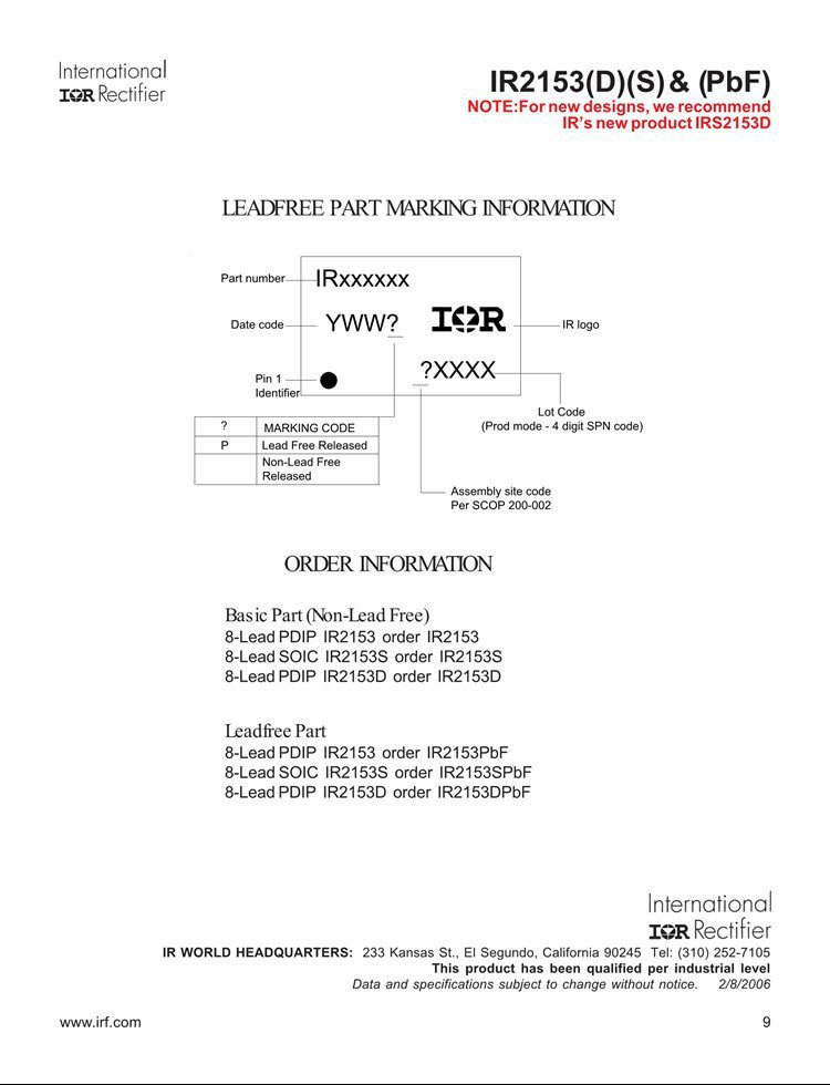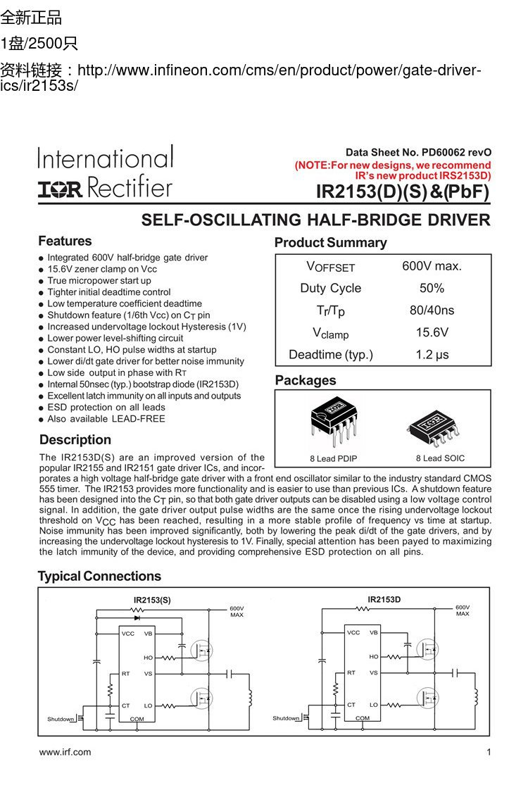 Оригинальный подлинный IR2153STRPBF SOIC-8 самовибрационный 600 В полумостовой драйвер микросхемы