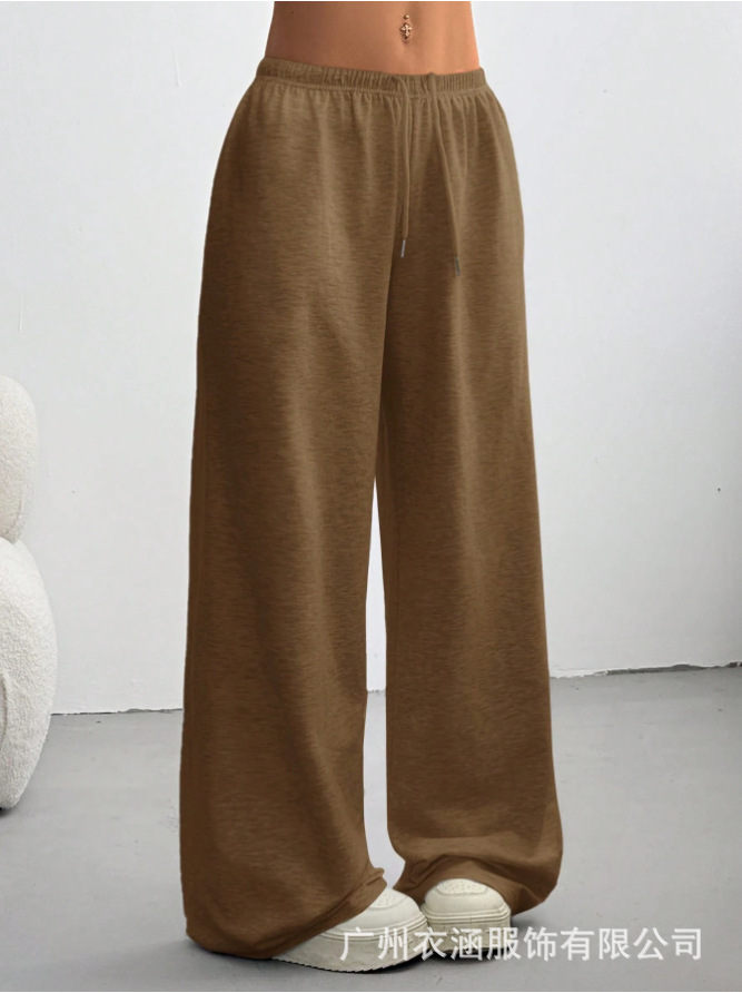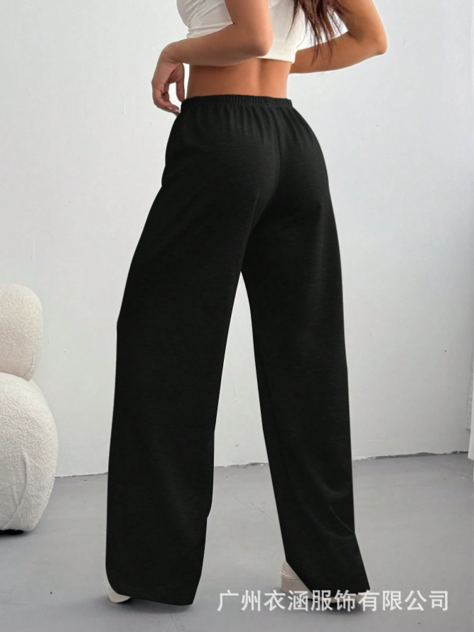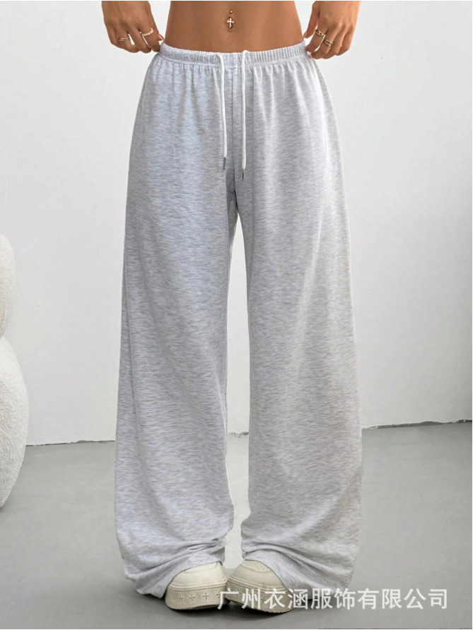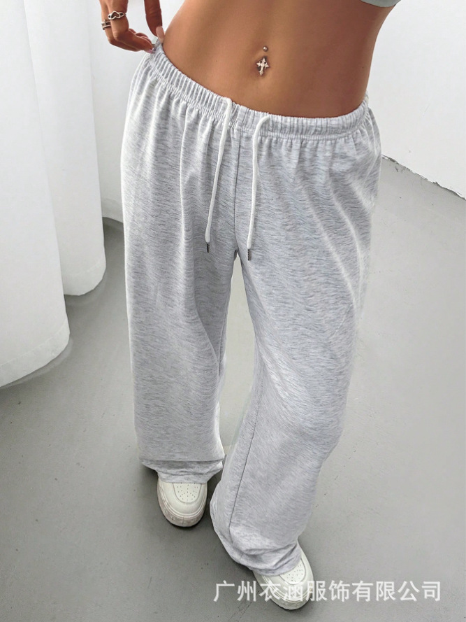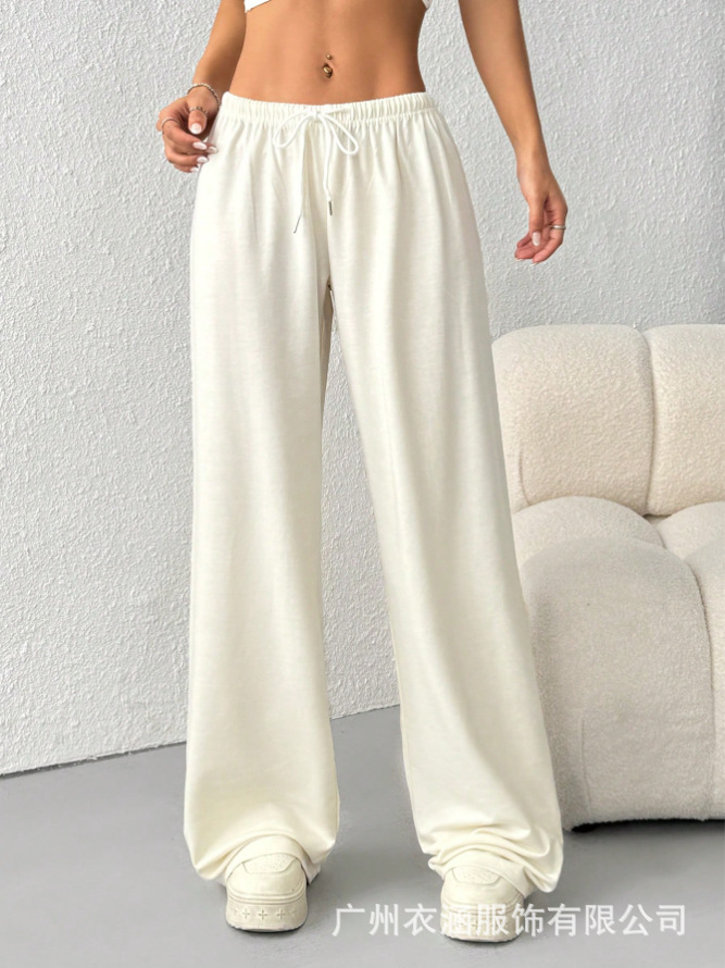 Европейские и американские стили с высокой талией шнуровочные шнурки повседневные широкие ноги свободные прямые брюки простые сплошные спортивные брюки женские