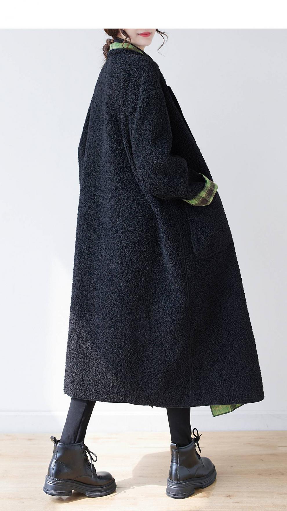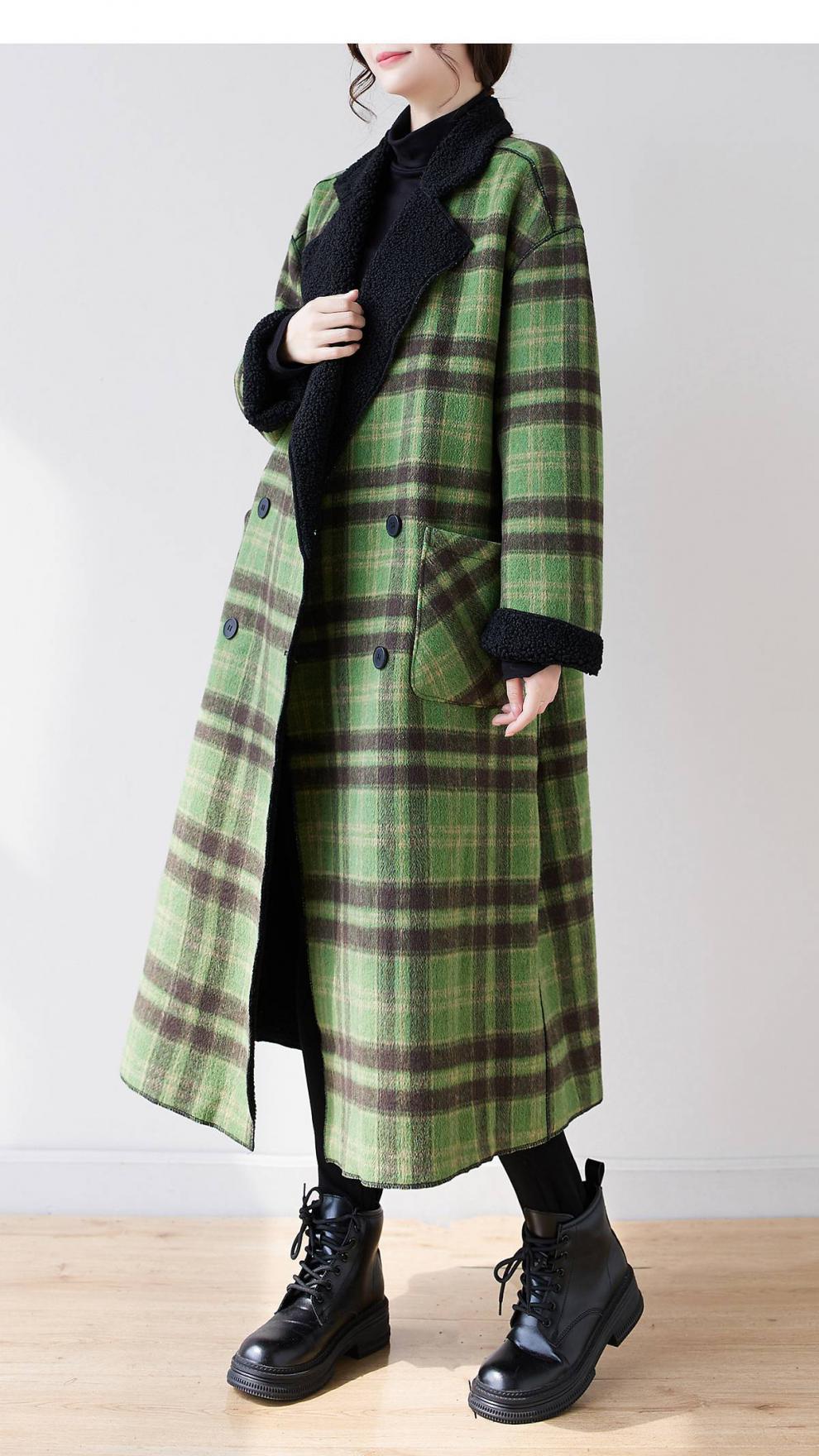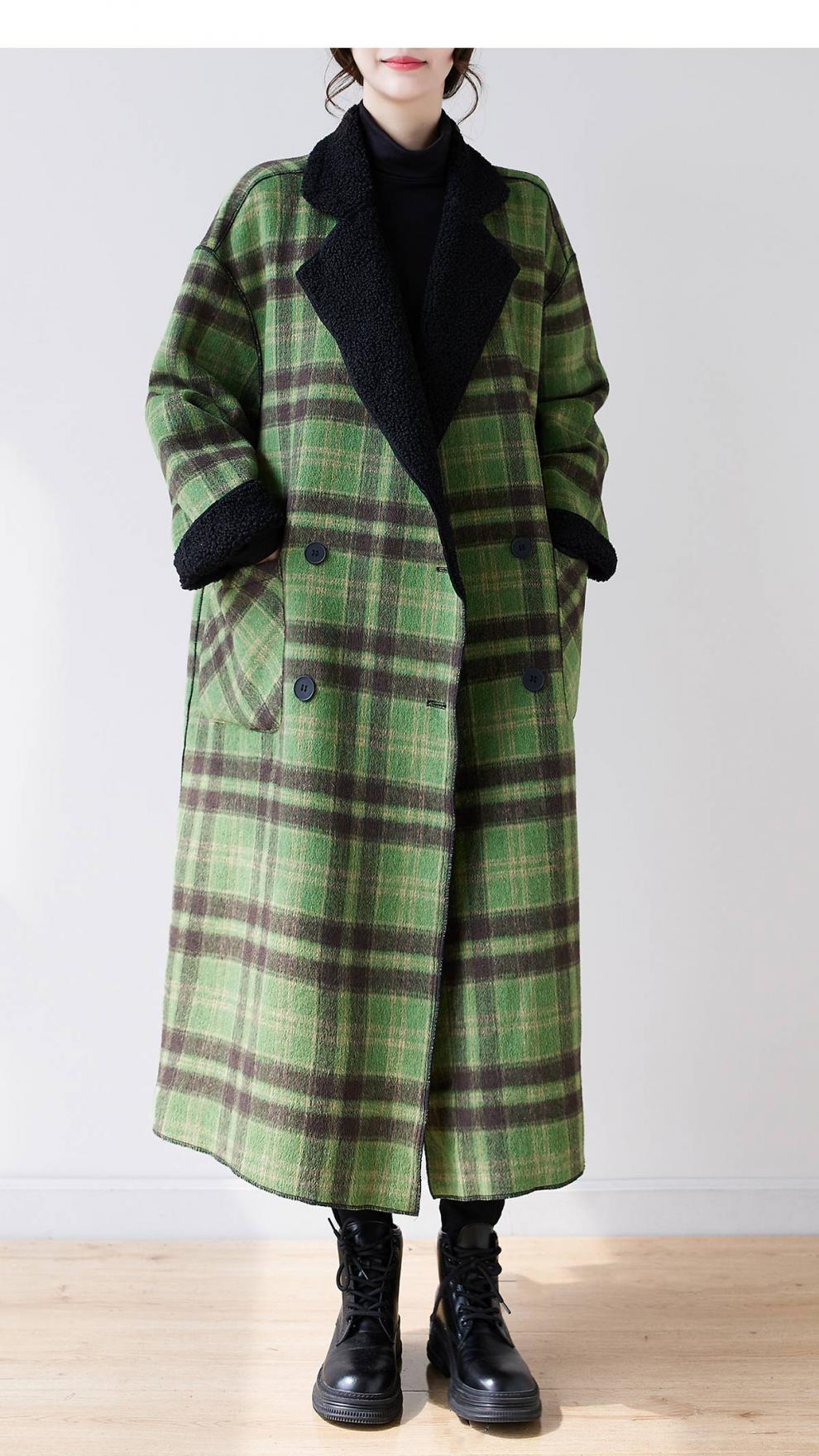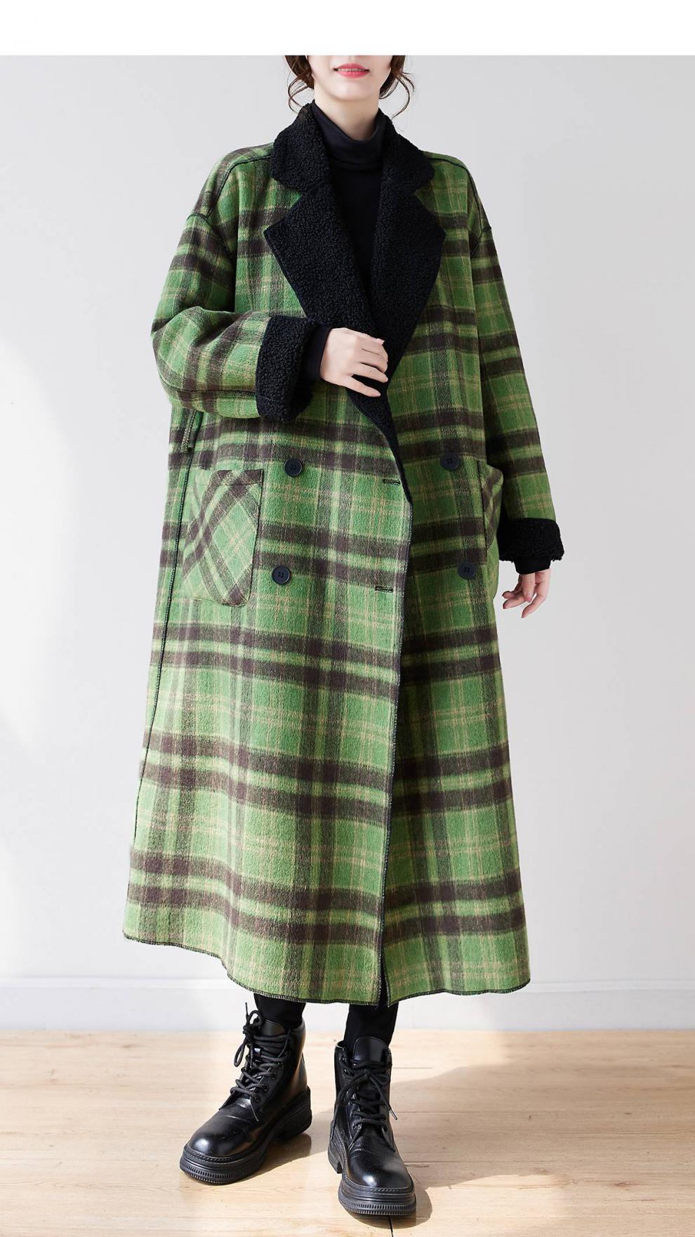 Женская зимняя одежда больших размеров, двустороннее длинное свободное пальто в клетку из овечьей шерсти на флисовой подкладке и утолщенное.