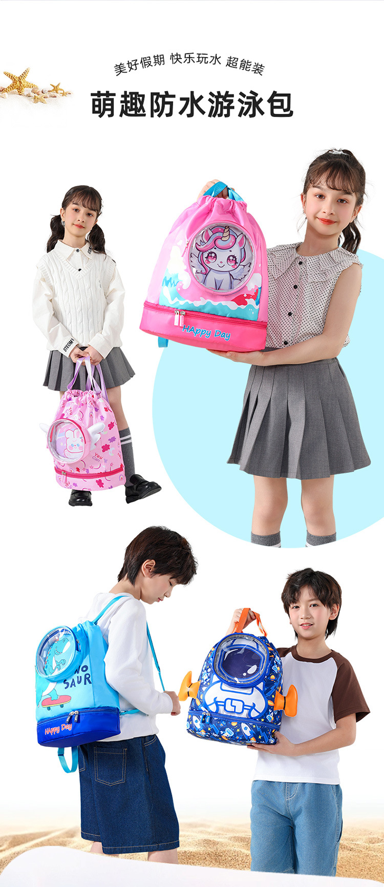 Новая детская сумка для плавания портативная легкая пляжная сумка мультфильм