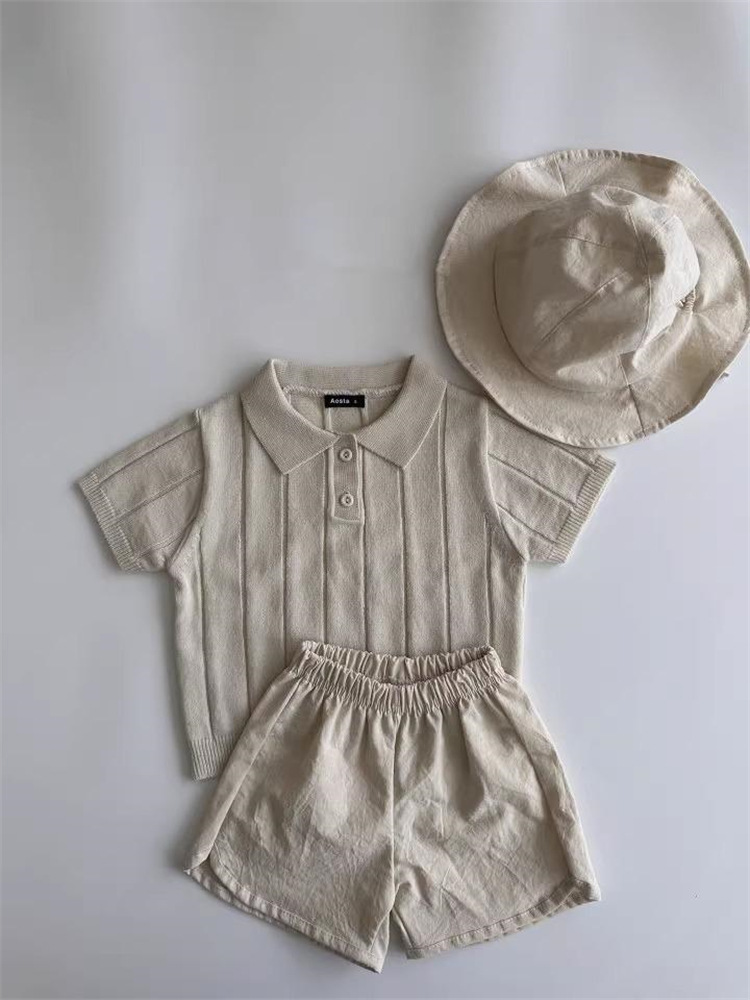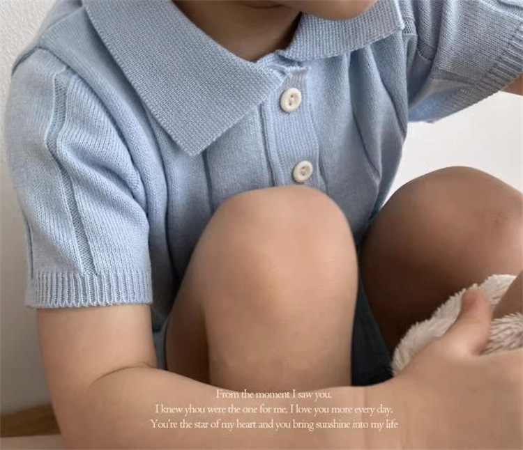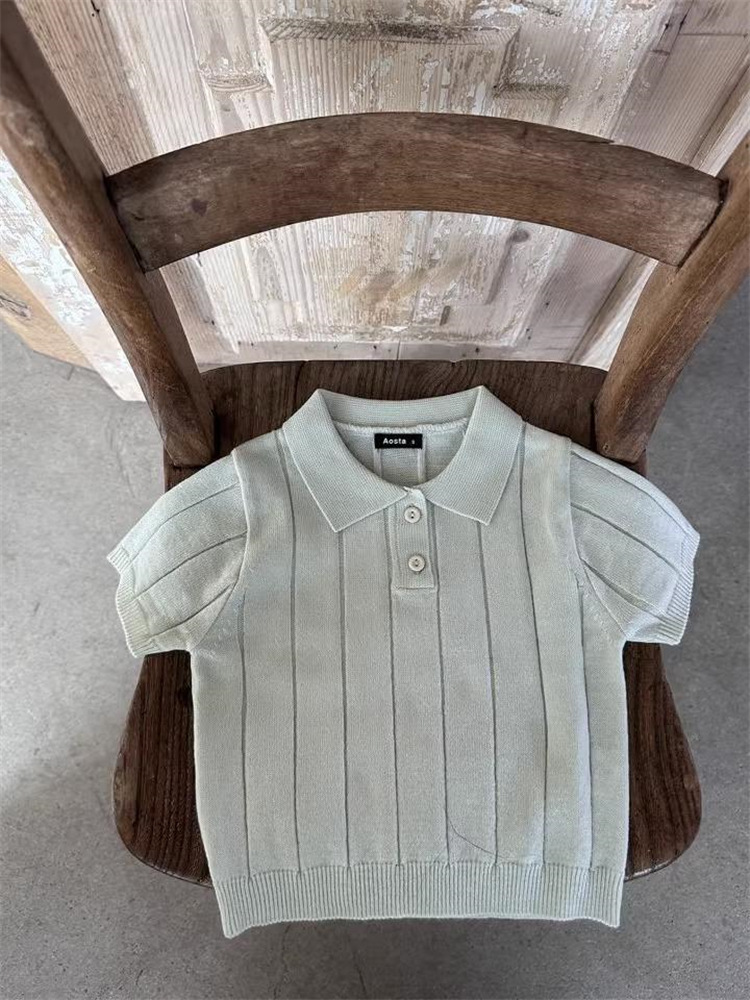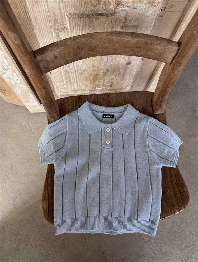 Корейская версия 2025: Весенне-летний стиль, тонкий летний трикотажный топ с отложным воротником для младенцев и малышей, детский пуловер