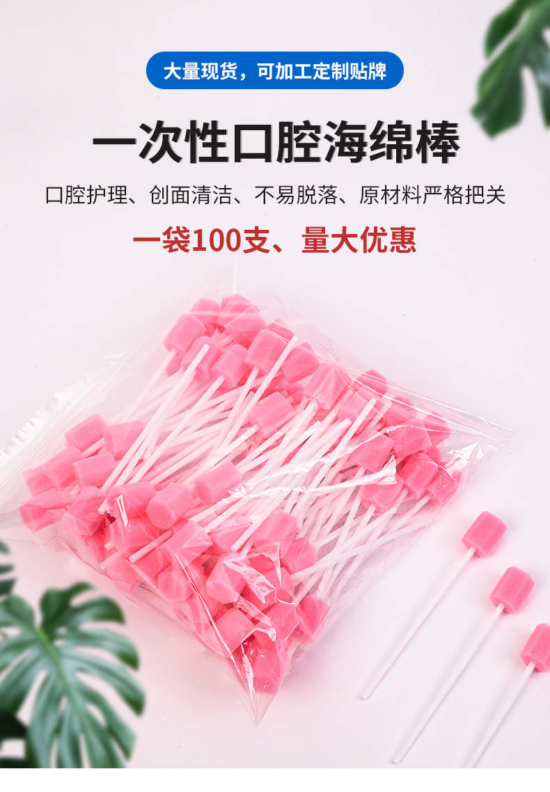 Одноразовая губка для чистки полости рта, губка-тампон, губка для чистки, 100 пакетов дезинфицирующих щеток