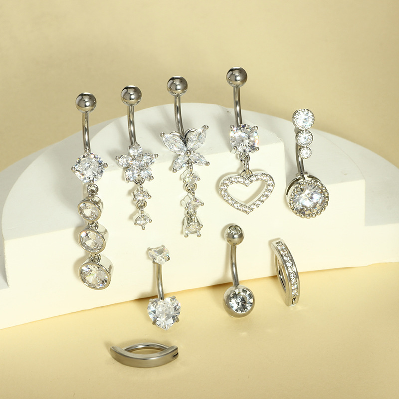 Модные европейские и американские девятикомпонентные кольца из нержавеющей стали с цирконом, двусторонние гладкие кольца для пирсинга пупка, ювелирные изделия для внешней торговли, электронная коммерция, ювелирные изделия