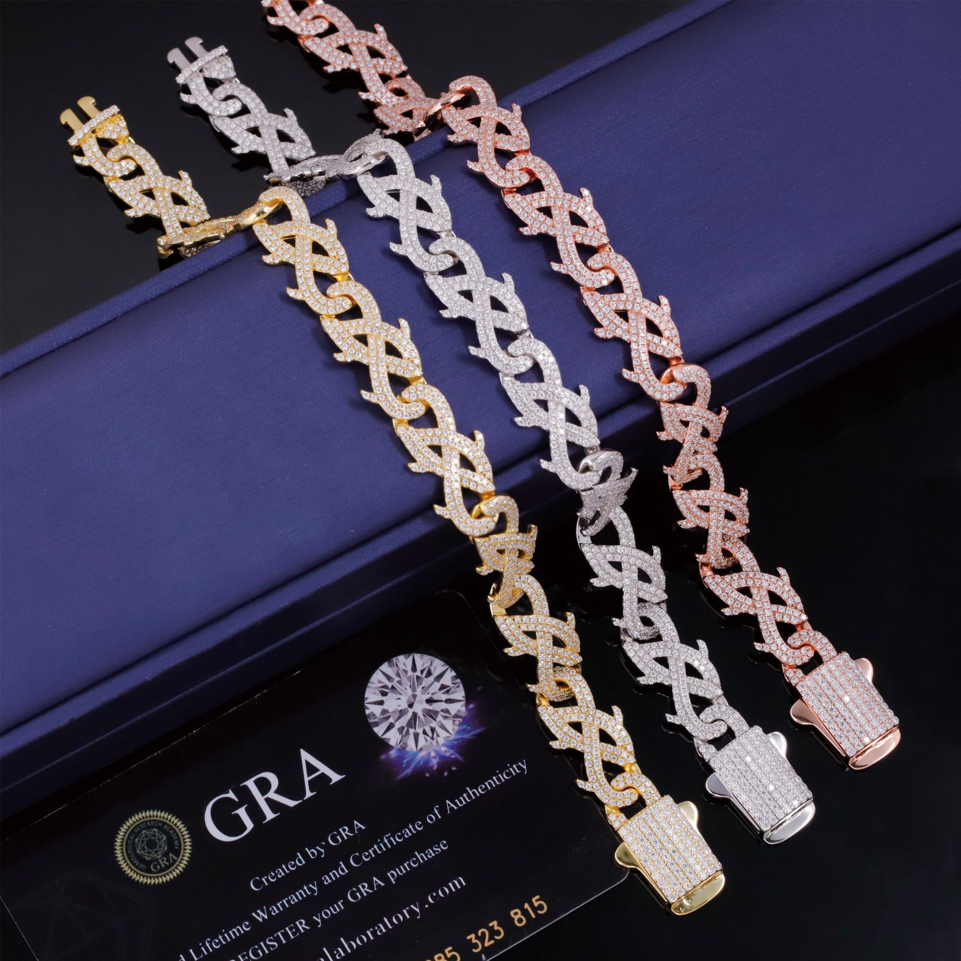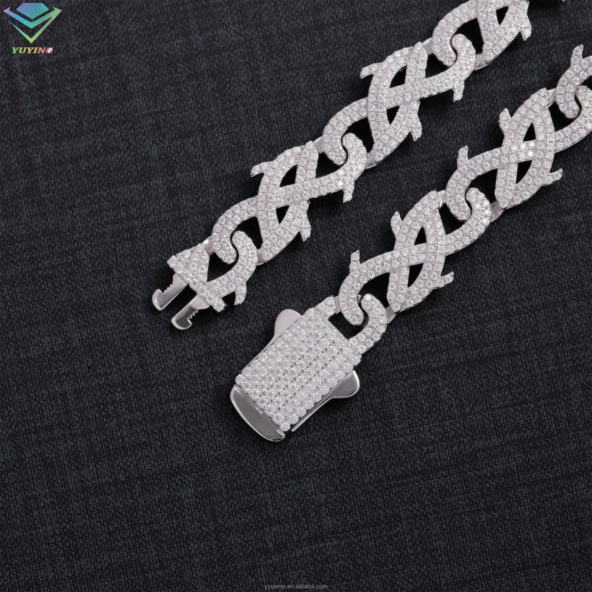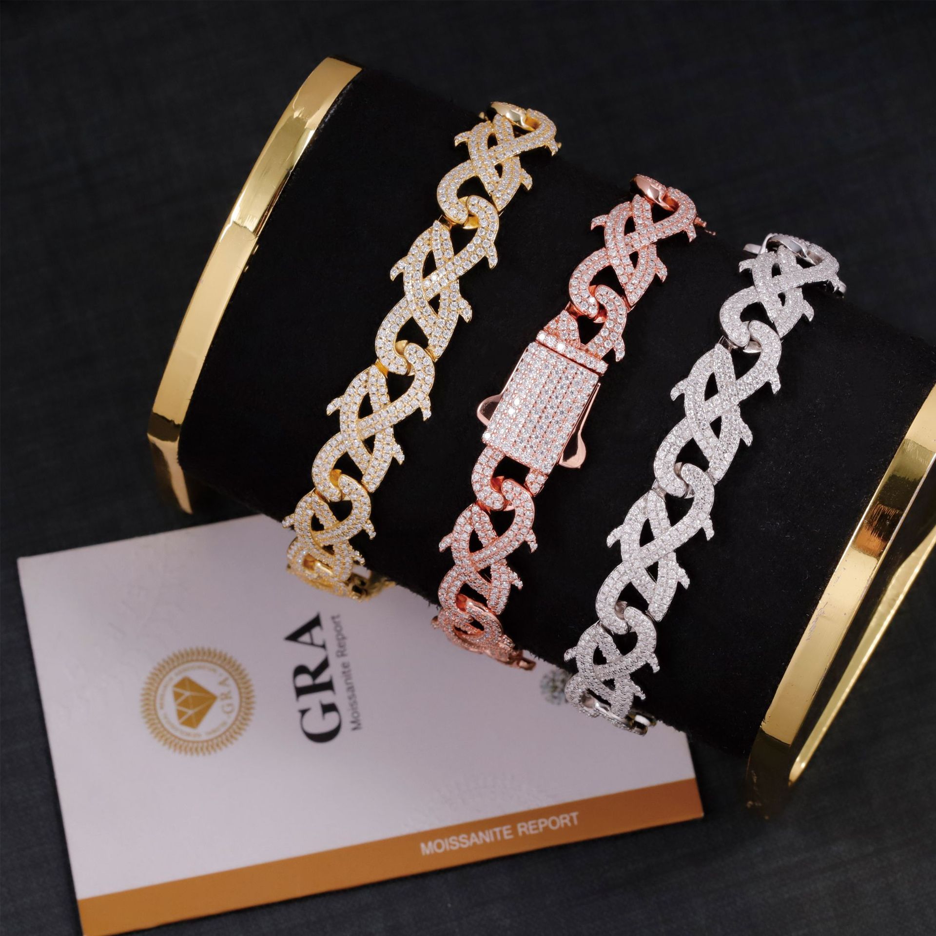 Браслет в стиле хип-хоп из серебра S925 с инкрустацией из муассанита, 8 мм, кубинский браслет, модный и уникальный, популярный стиль, унисекс.