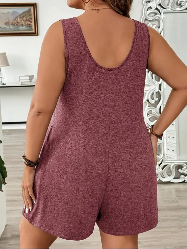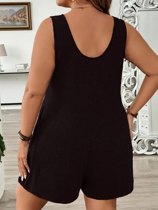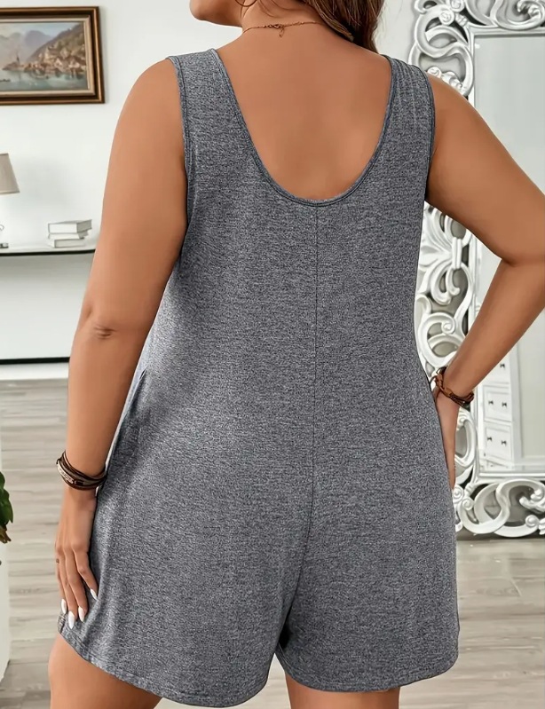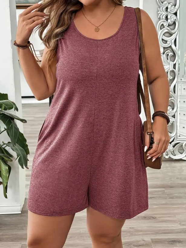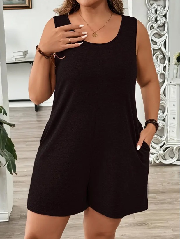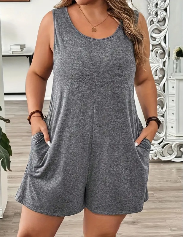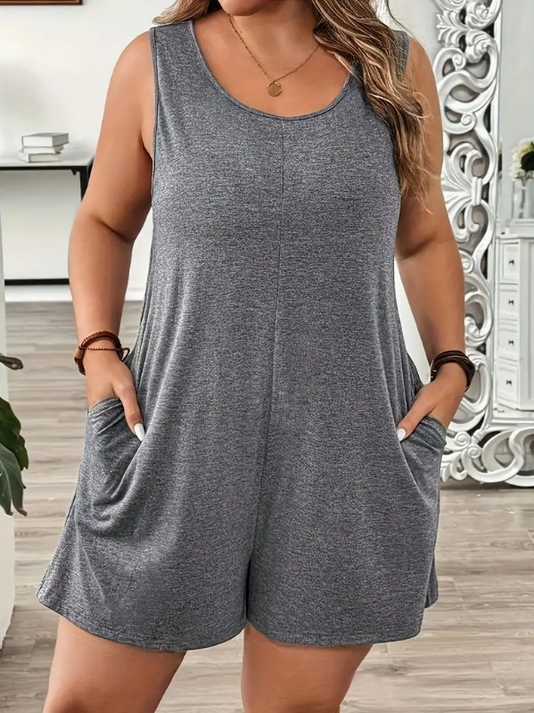 2025 Европейский и Американский трансграничный комбинезон большого размера элегантный однотонный комбинезон без рукавов повседневный карманный комбинезон с круглым вырезом