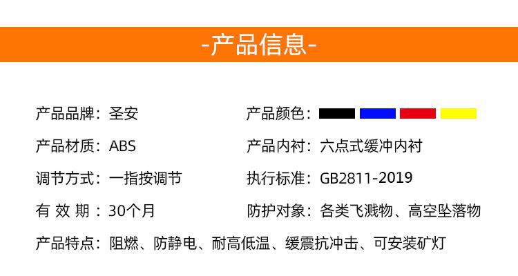 Шахтёрский шлем Color Saint An, антистатический, огнестойкий, чёрный, подземный, из АБС-пластика, со светоотражающими элементами, защитный шлем MA.
