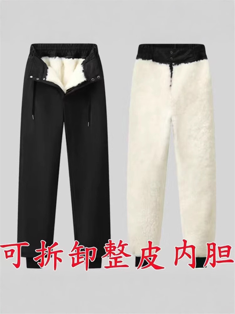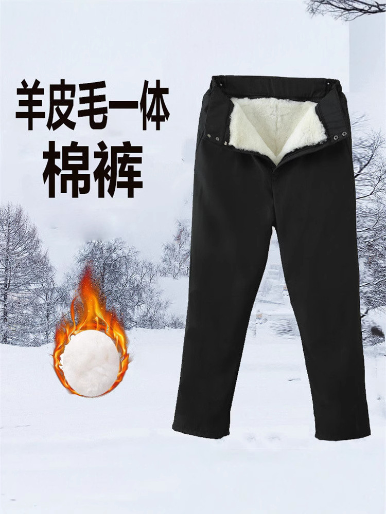 Брюки из овчины с высокой талией для среднего и пожилого возраста, устойчивые к холоду и теплые брюки из натуральной кожи, брюки из овчины с интегрированной подкладкой из овчины