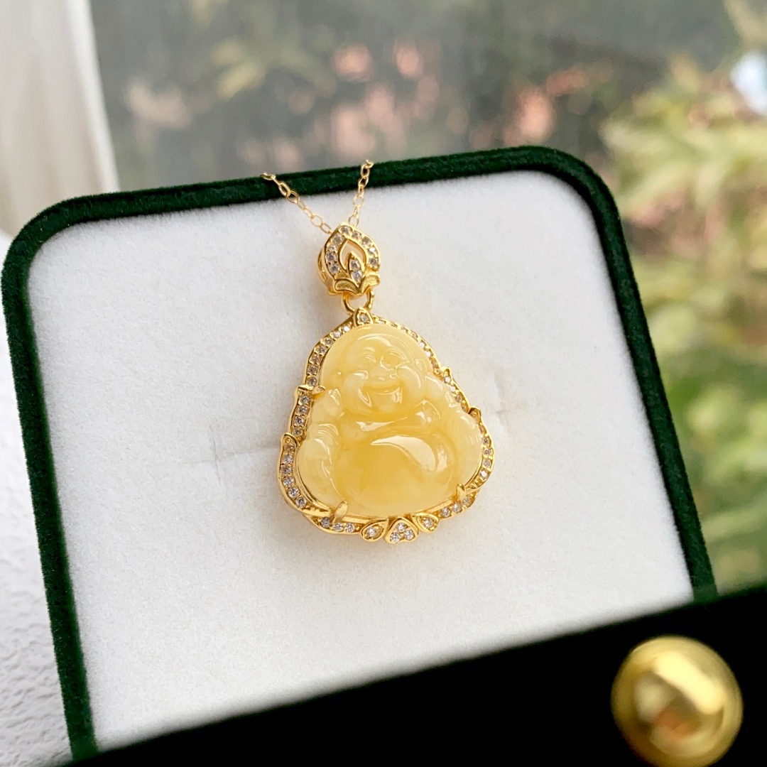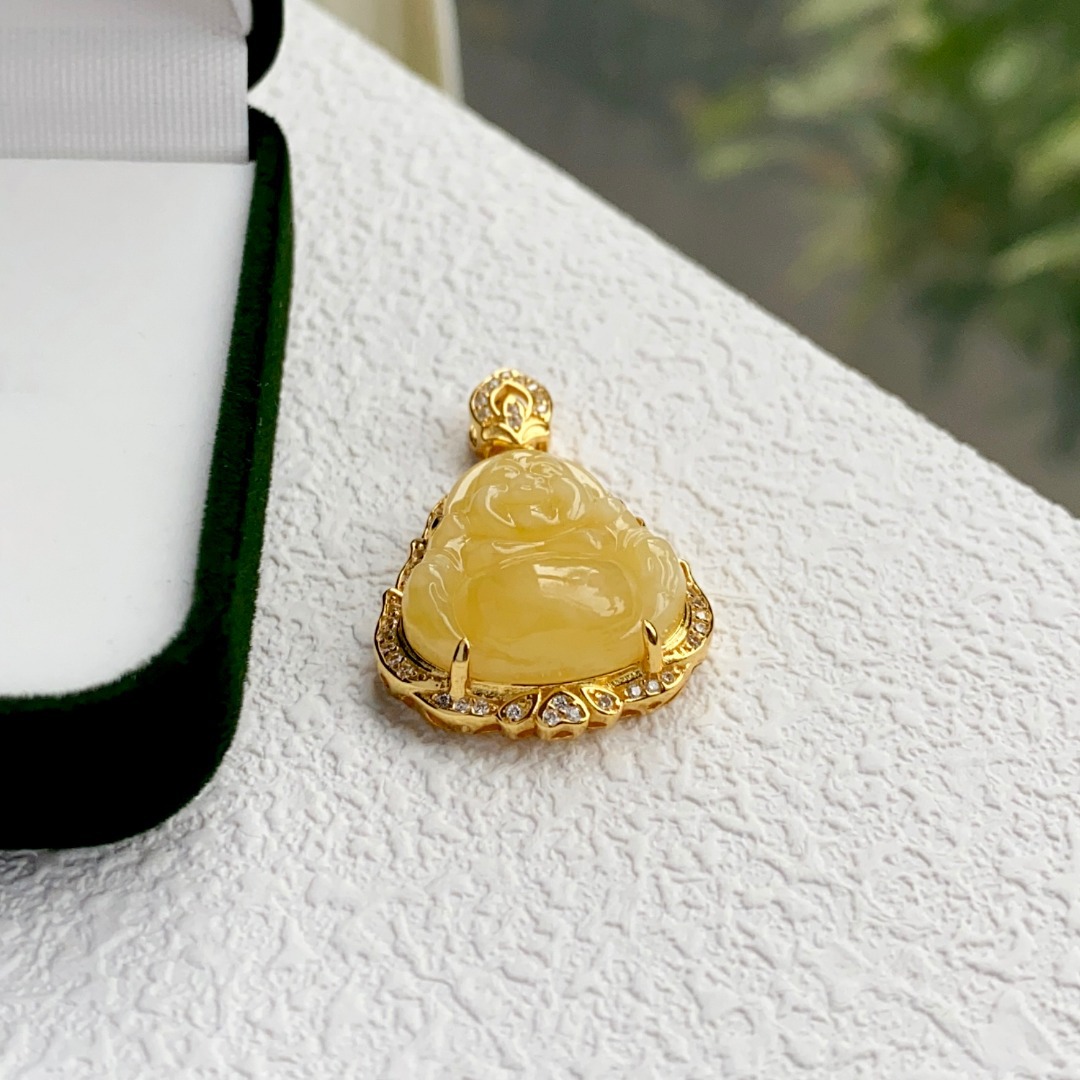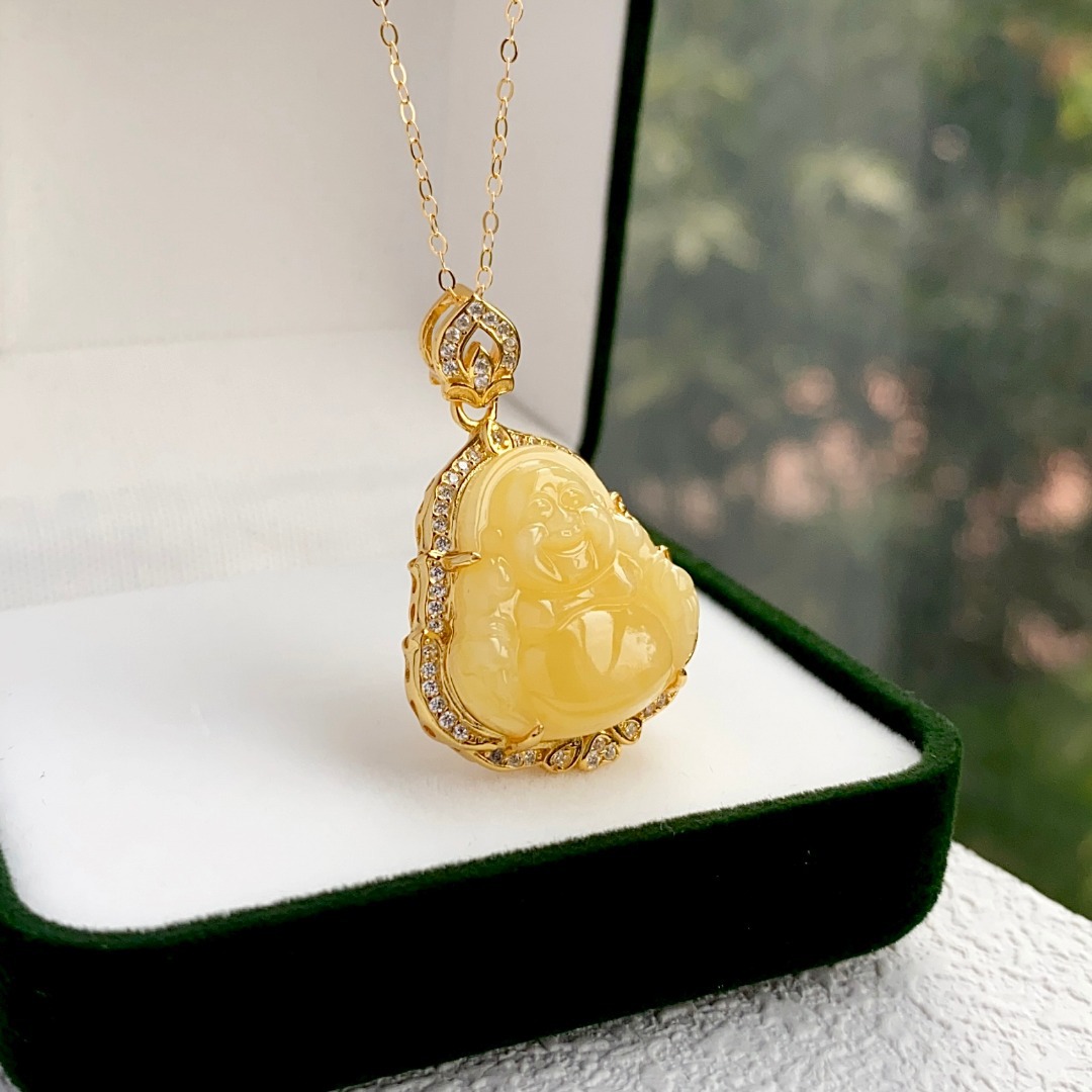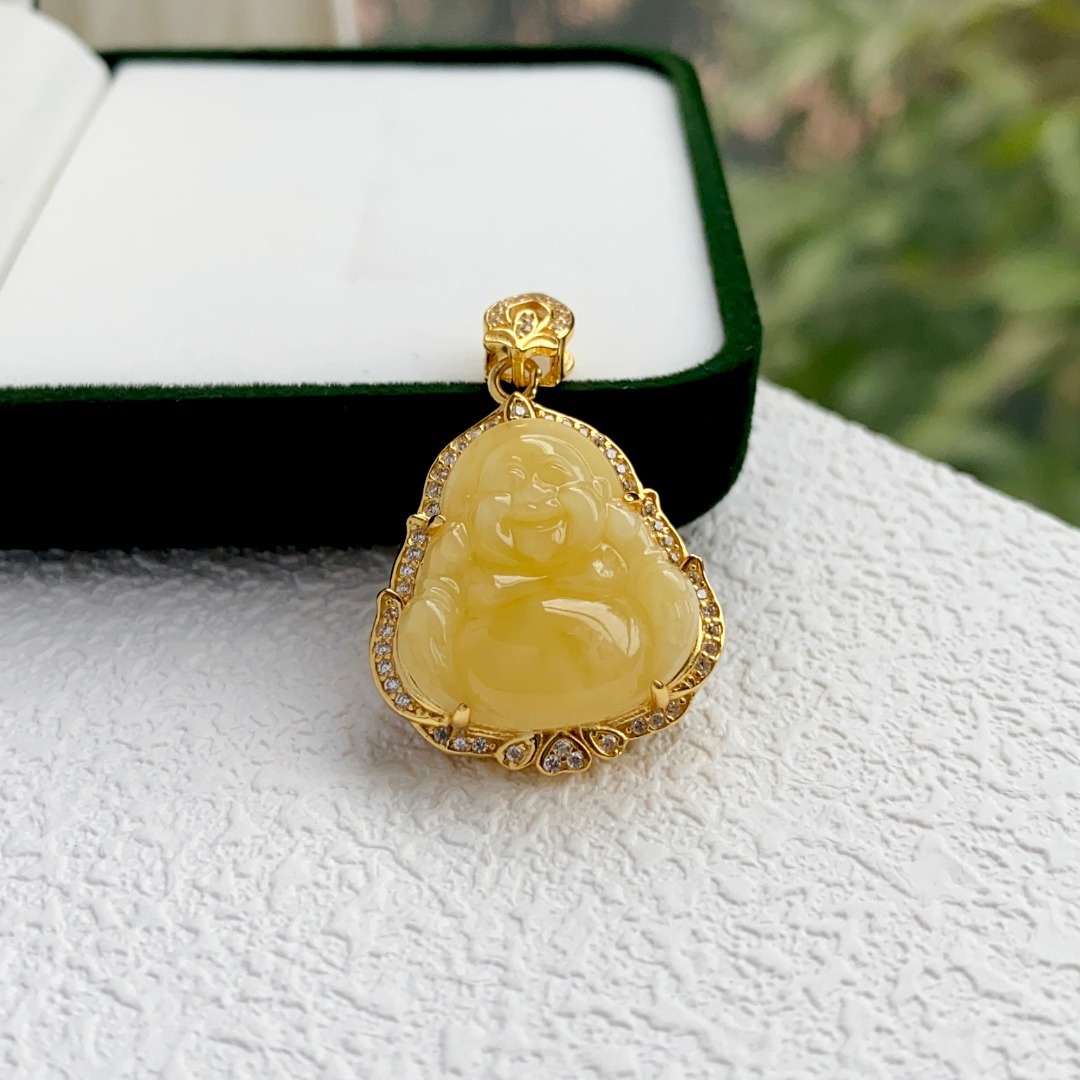 [S925 Серебро] Подвеска Будды из натурального пчелиного воска - около 18*19 мм; Серебряная цепочка S925 + кулон Будды из пчелиного воска