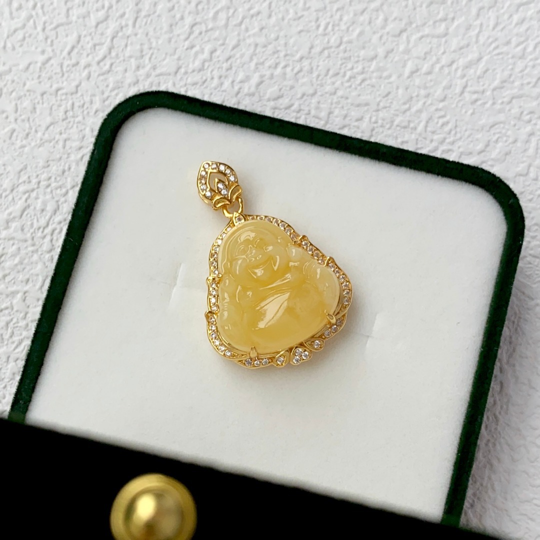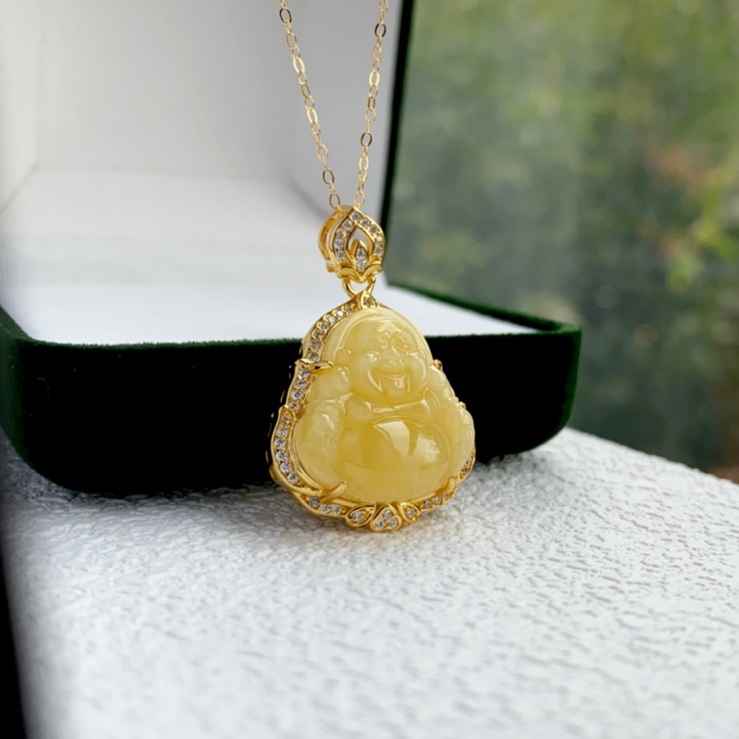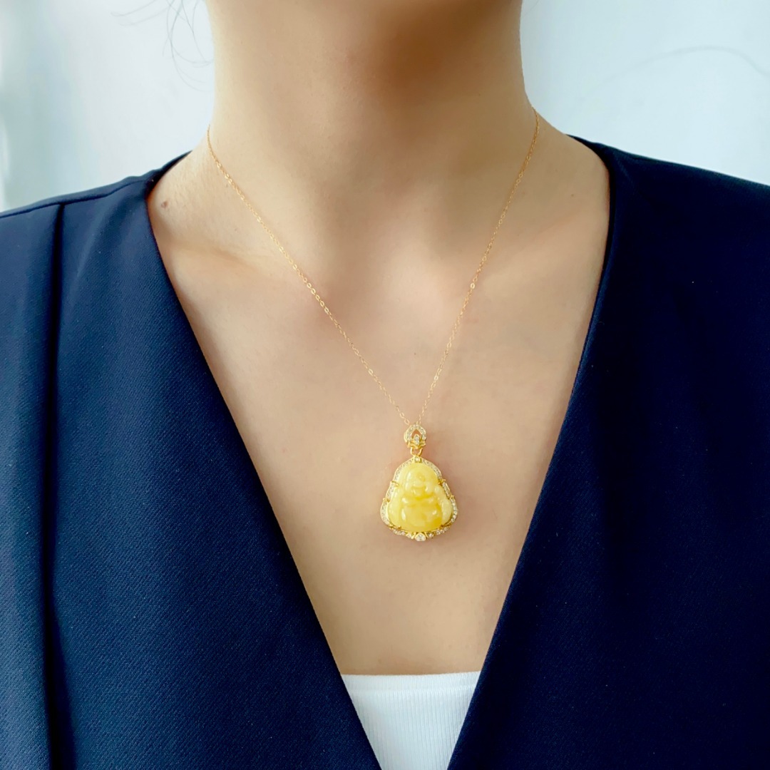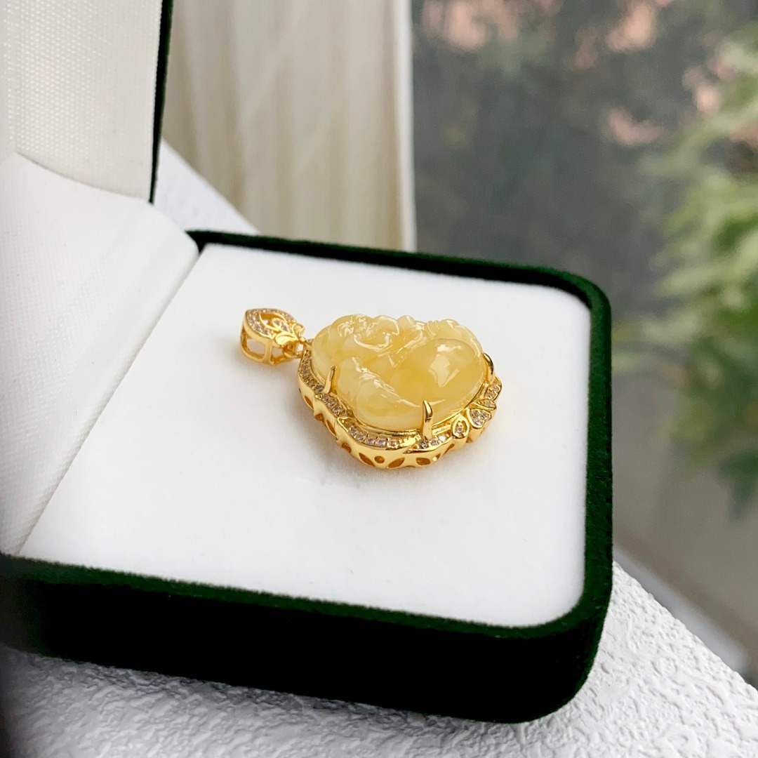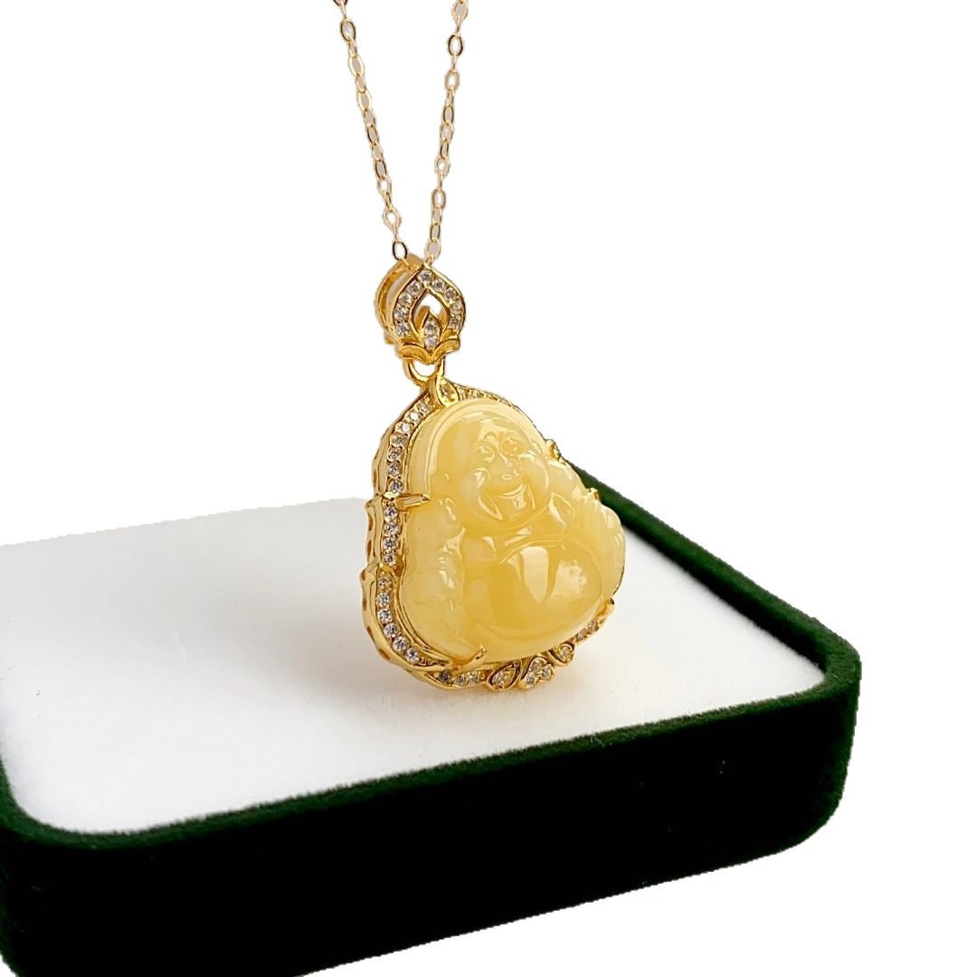 [S925 Серебро] Подвеска Будды из натурального пчелиного воска - около 18*19 мм; Серебряная цепочка S925 + кулон Будды из пчелиного воска