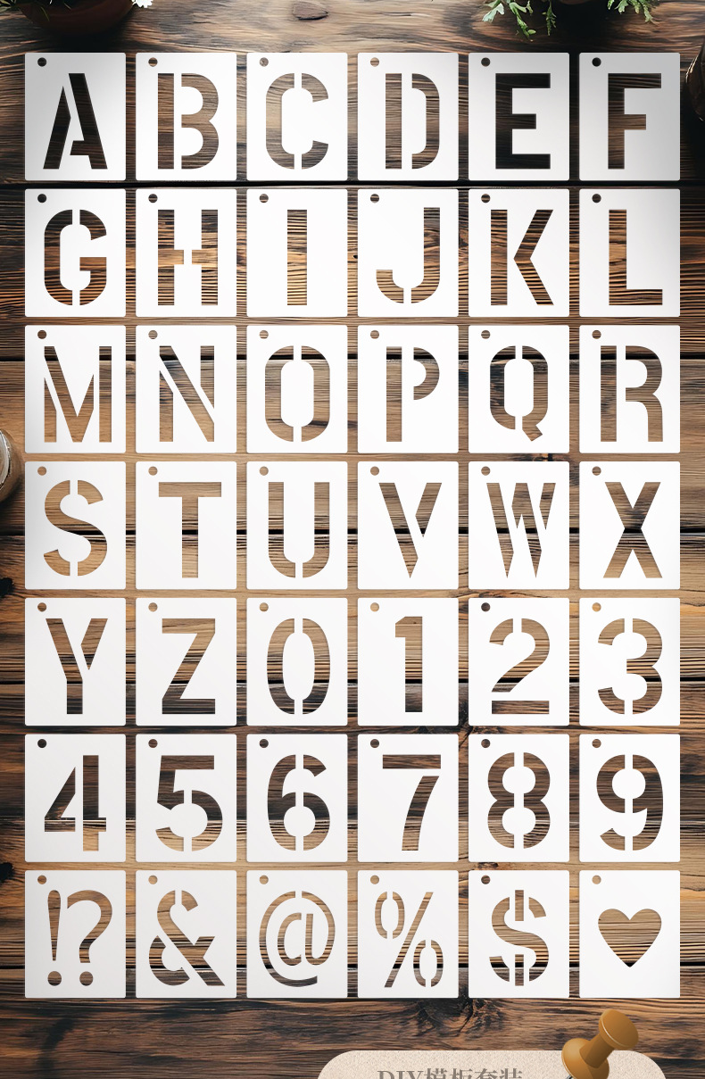 Набор из 42 шаблонов для рисования, линейка, Amazon, кросс-бордер, английская верхняя буква, алфавитно-цифровой рисунок, спрей, граффити