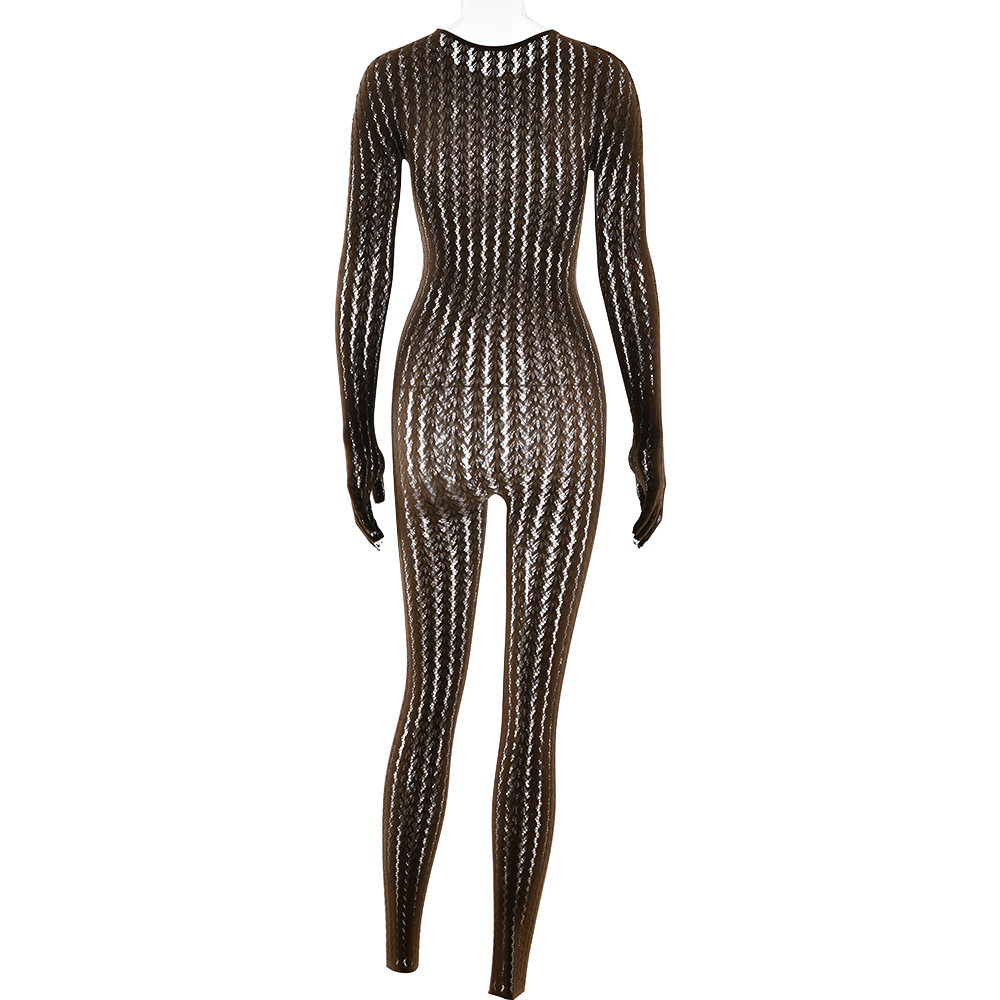 TY0039 Прямые поставки с фабрики: Сексуальный комбинезон в европейском и американском стиле, модный бесшовный, с жаккардовым узором в полоску, с длинными рукавами и дизайном перчаток без пальцев.