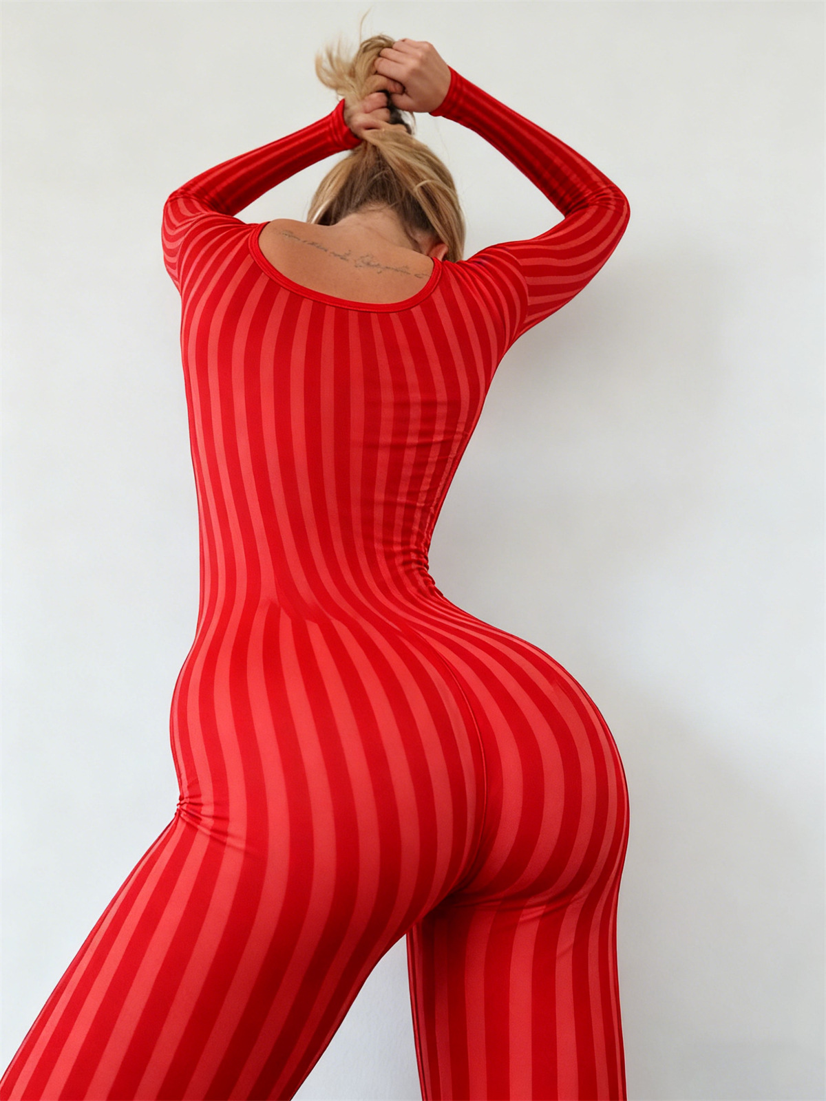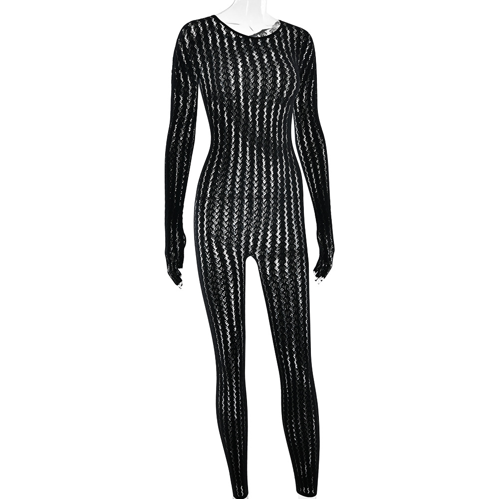 TY0039 Прямые поставки с фабрики: европейское и американское сексуальное нижнее белье, модный бесшовный полосатый жаккардовый комбинезон с длинными рукавами.