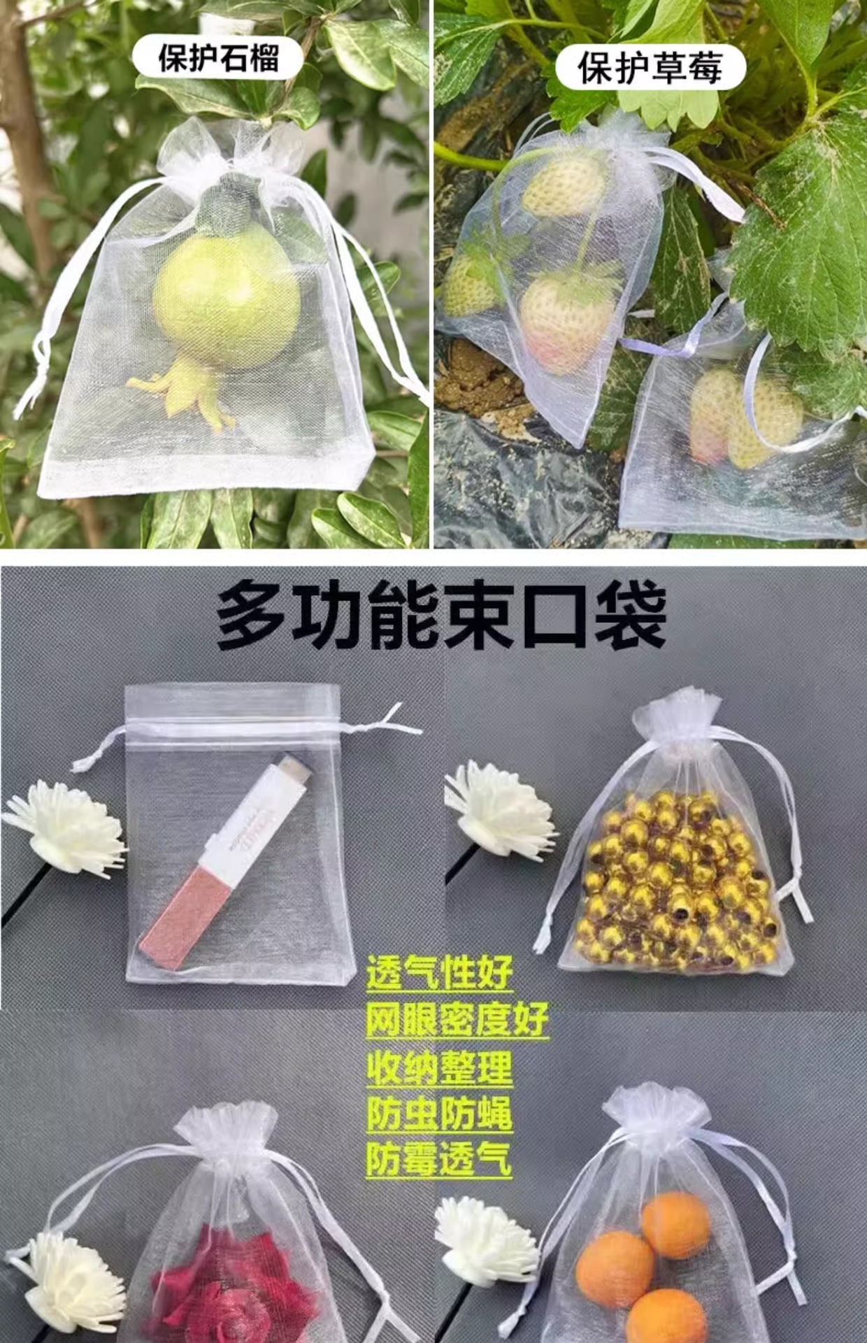 Пакеты для фруктов и овощей с защитой от насекомых 17*27 (50 шт.); Пакеты для фруктов и овощей с защитой от насекомых 24*38 (50 шт.); Пакет для фруктов и овощей с защитой от насекомых 32*38 (1 шт.); Пакет для фруктов и овощей с защитой от насекомых 32*48 (1 шт.)